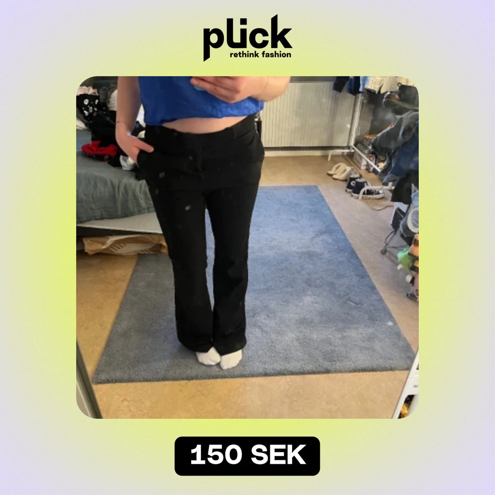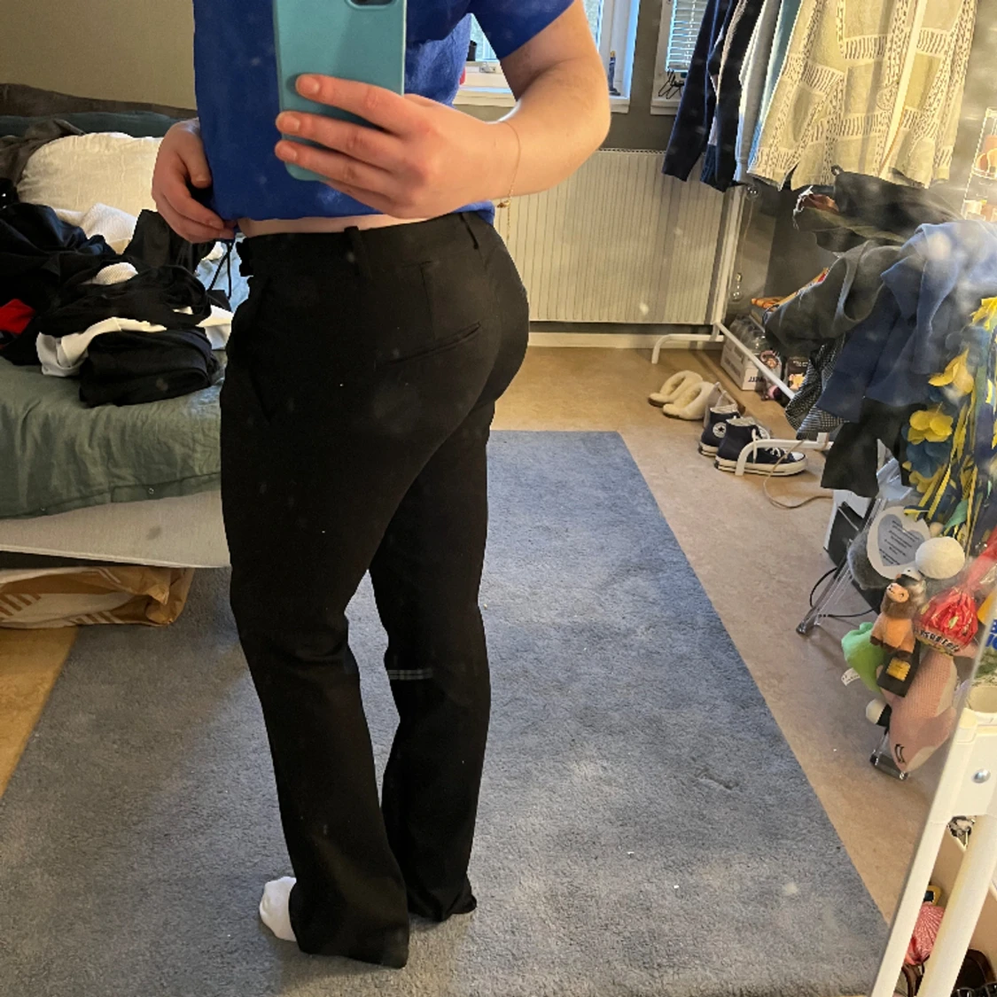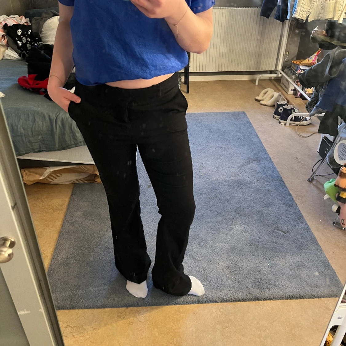 Svarta lågmidjade Bootcut kostymbyxor från Lindex, använda men i bra skick💓💓strlk 38 men skulle säga 36