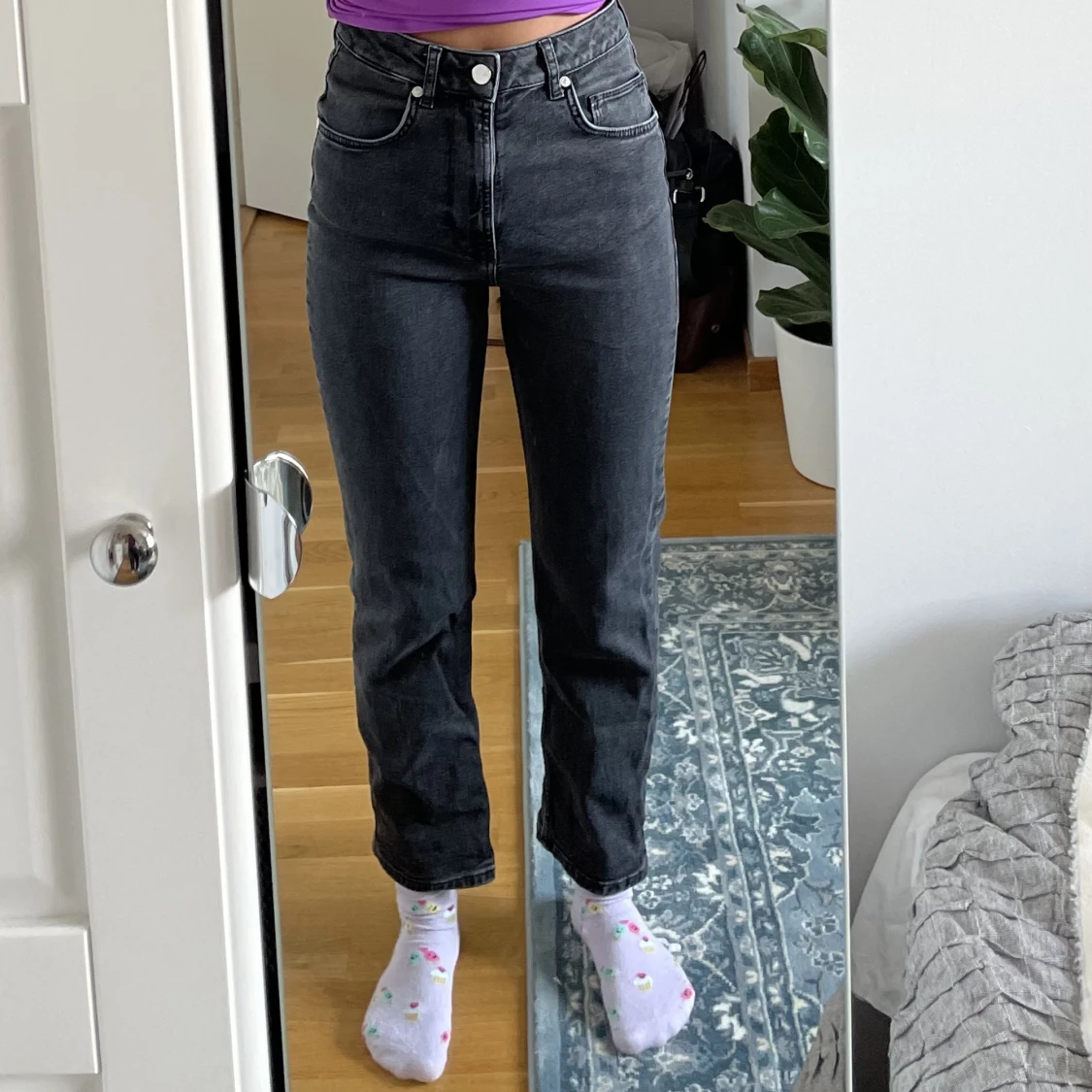 Svarta jeans i jättebra skick. Storlek W28 L32 på lappen men jag skulle säga att dem är storlek XS. Lite för korta för mig som är 163 cm. Skulle nog vara perfekt längd för någon som är 155-160 cm.💕