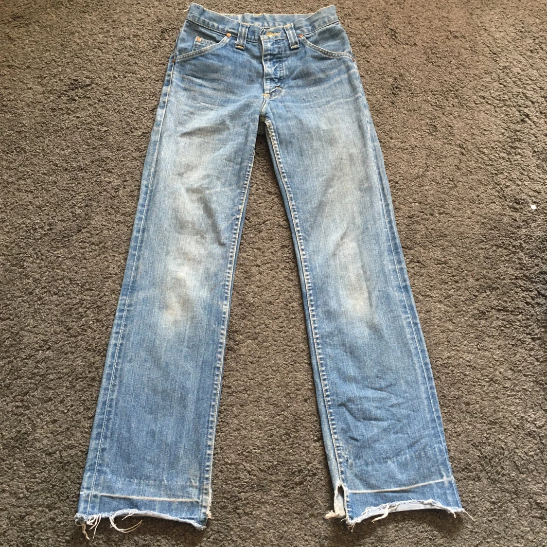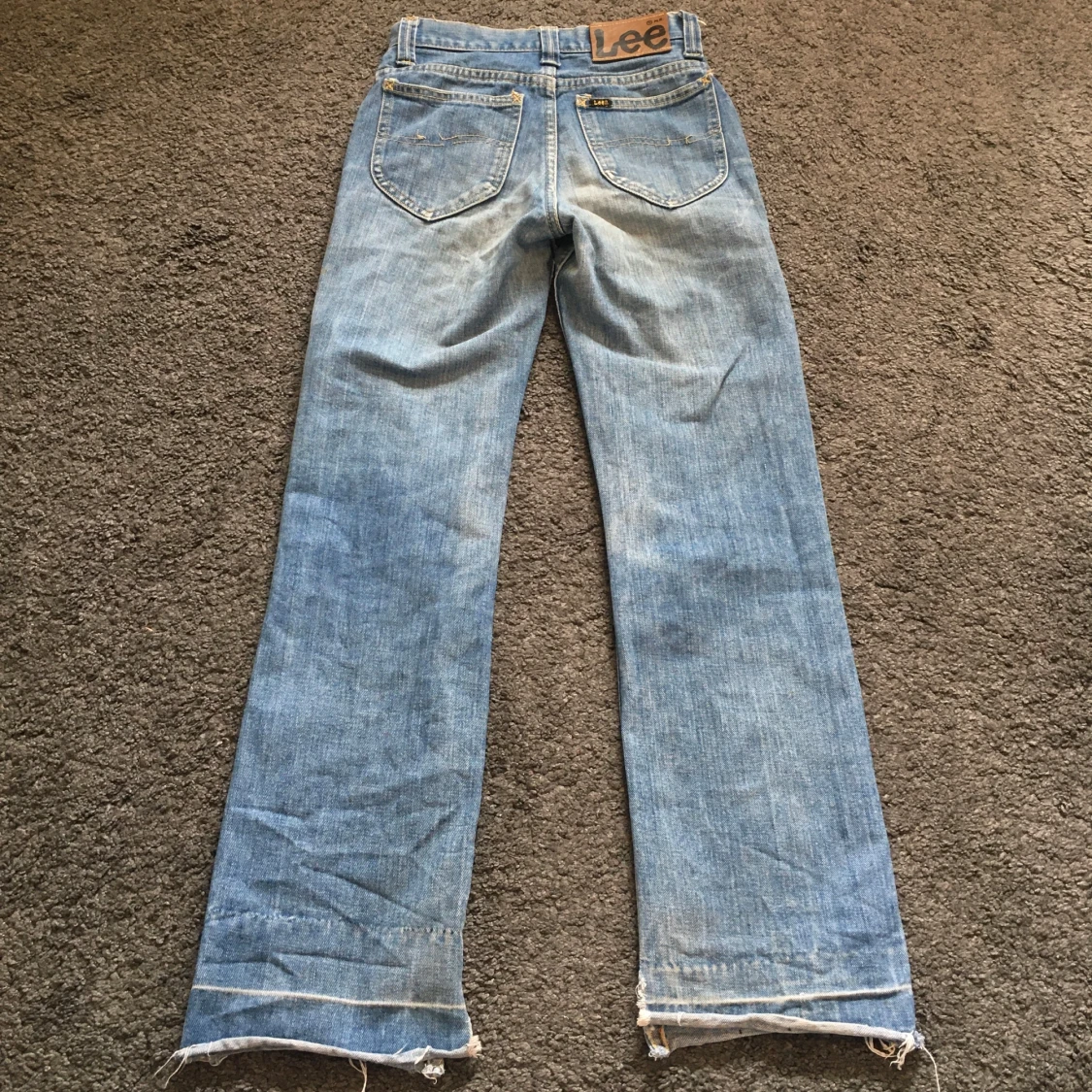 Vintage jeans från Lee! 100% bomull, medelhöga/straightleg/flare Midjemått 67cm Innerbenslängd 76cm Grenhöjd 26cm.