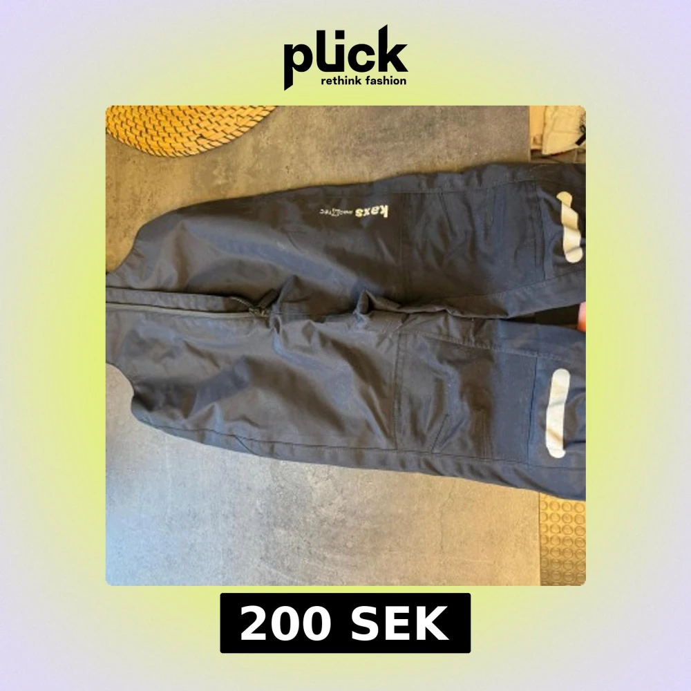 Svarta skalbyxor från Kaxs Proxtec i storlek 92. Fothällorna är hela. Finns någon mindre skada på yttertyget baktill, se sista bilden, men det är inte hål igenom innertyget.