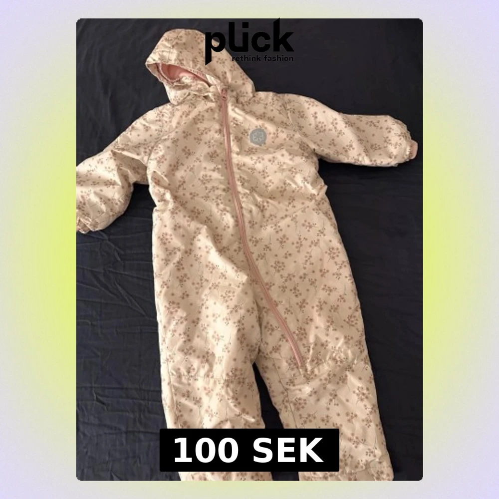 Säljer en supermysig täckbyxdress från Lupilu i storlek 98. Utsidan är ljusbeige med små rosa blommor och har en sned dragkedja framtill. Insidan är fodrad med mjuk rosa fleece som håller värmen. Perfekt för kalla dagar och har huva för extra skydd.