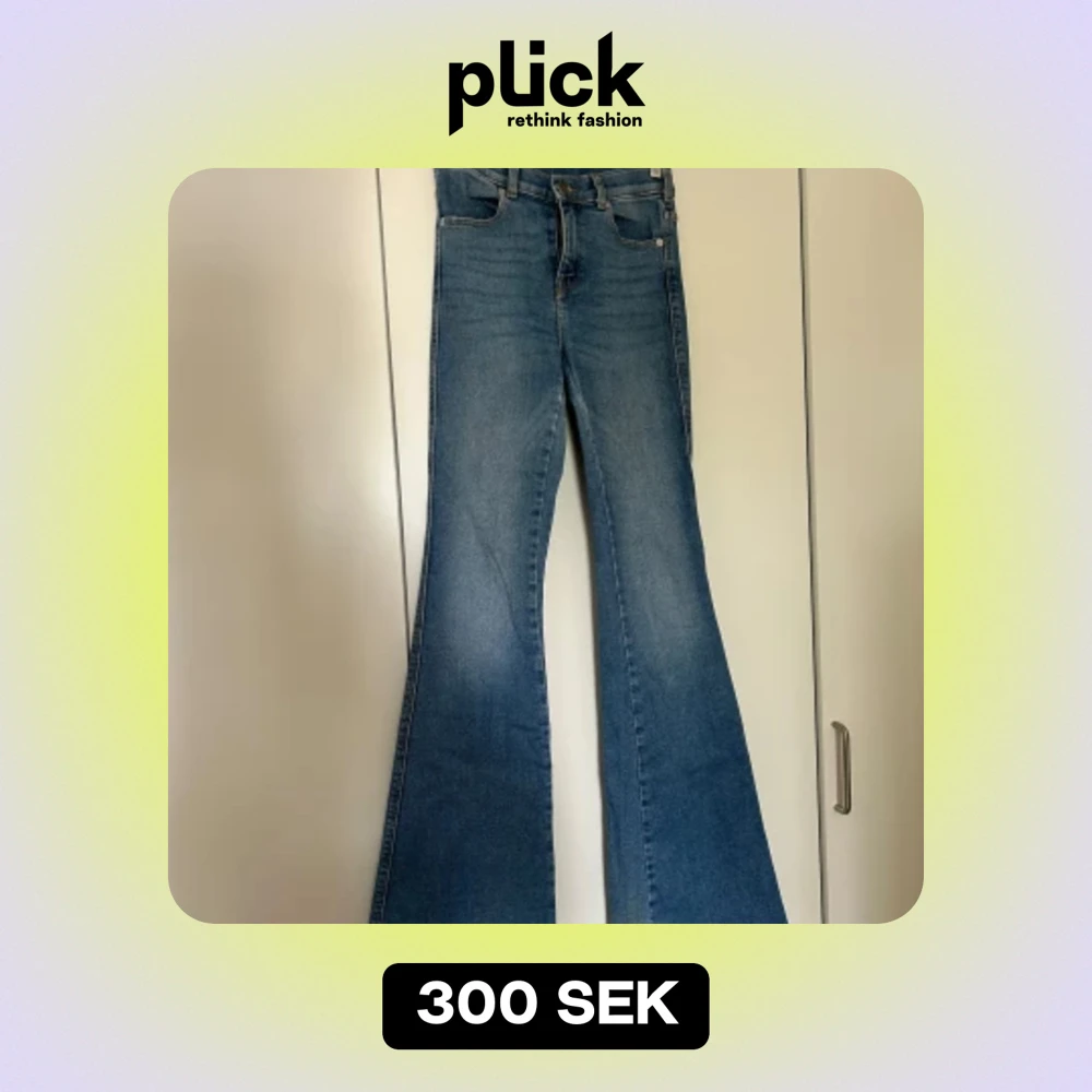 Säljer ett par snygga blå bootcut jeans från Dr. Denim i storlek S/34. De har en klassisk fyrficksdesign och är perfekta för både vardag och fest. Jeansen är i bra skick och har en skön passform som sitter snyggt över höfterna och vidgar sig vid benen. Nypris 700kr