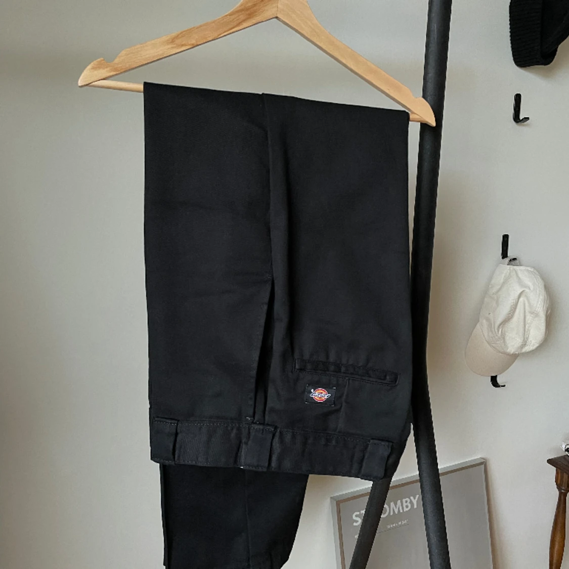 Cleana kostymbyxor/ chinos. Jag har normalt 32/33 i midjan men de nice att gå upp i storlek då Dickies när ganska små i midjan. Även nice att gå upp ännu mer för oversized fit
