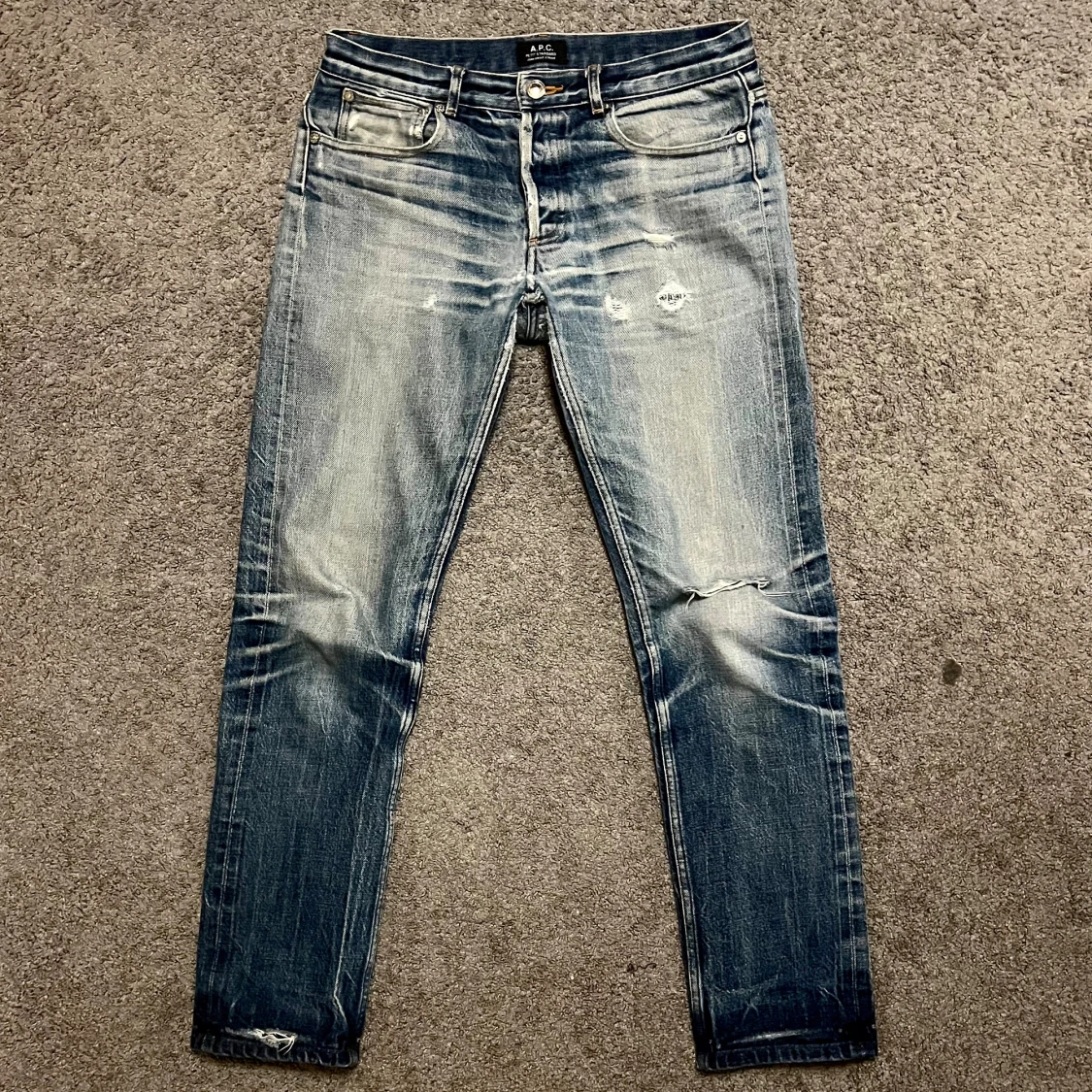 Tja säljer nu ett par sjukt snygga A.P.C jeans med galen fade i storlek W29 för endast 2000kr! Dom har blivit patchade i grenen. Storlek W30 men skulle säga att dom sitter mer som W29