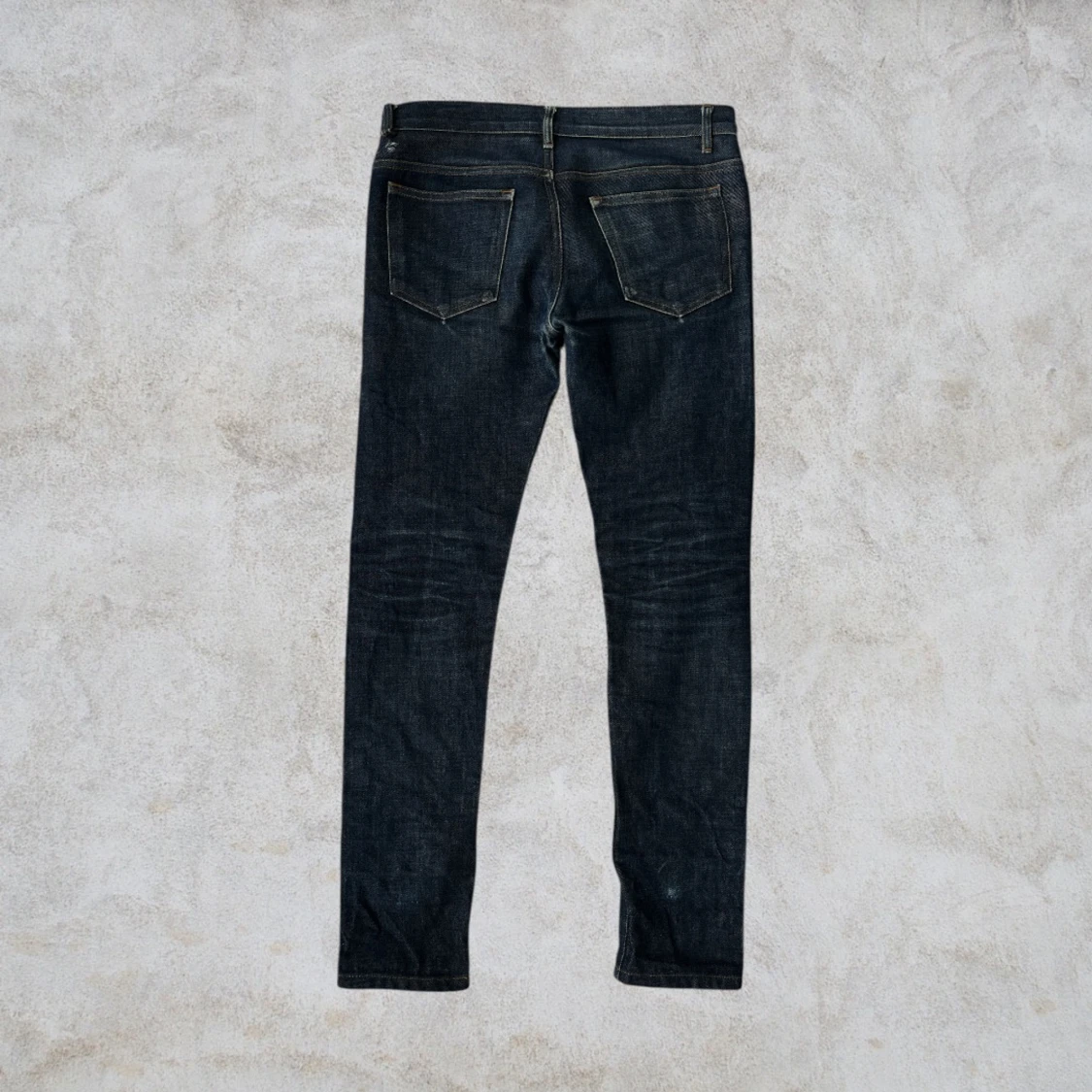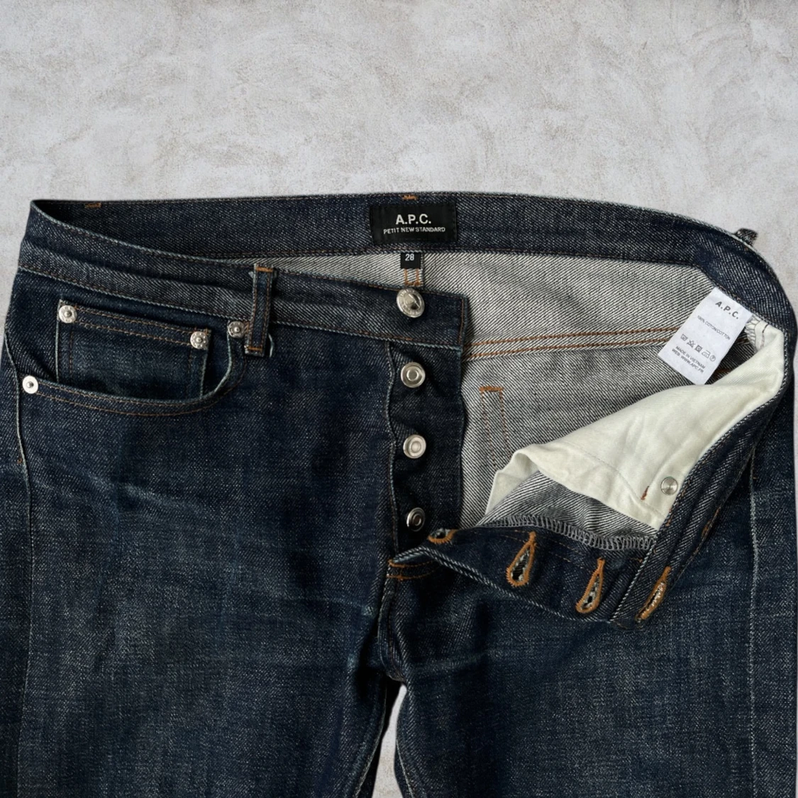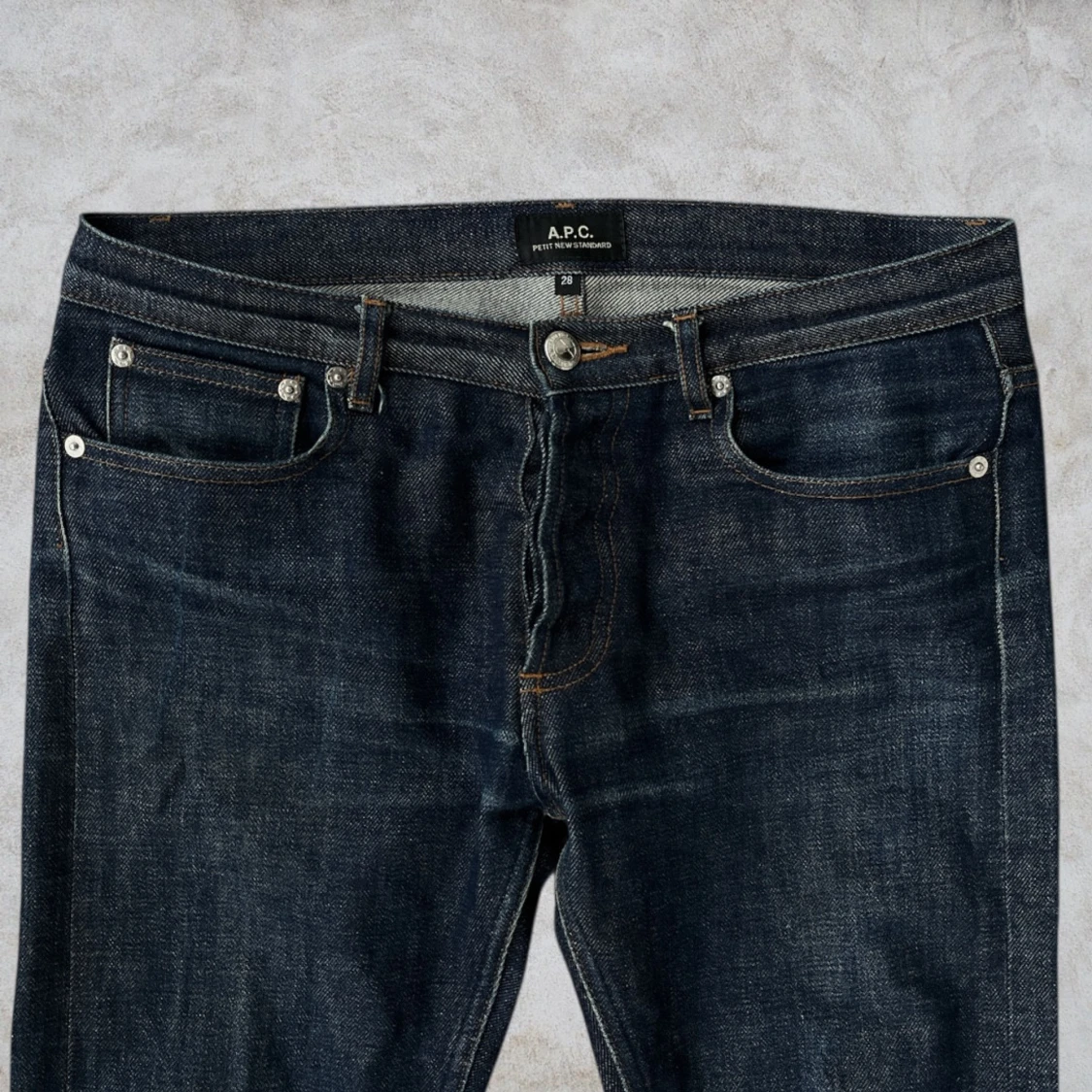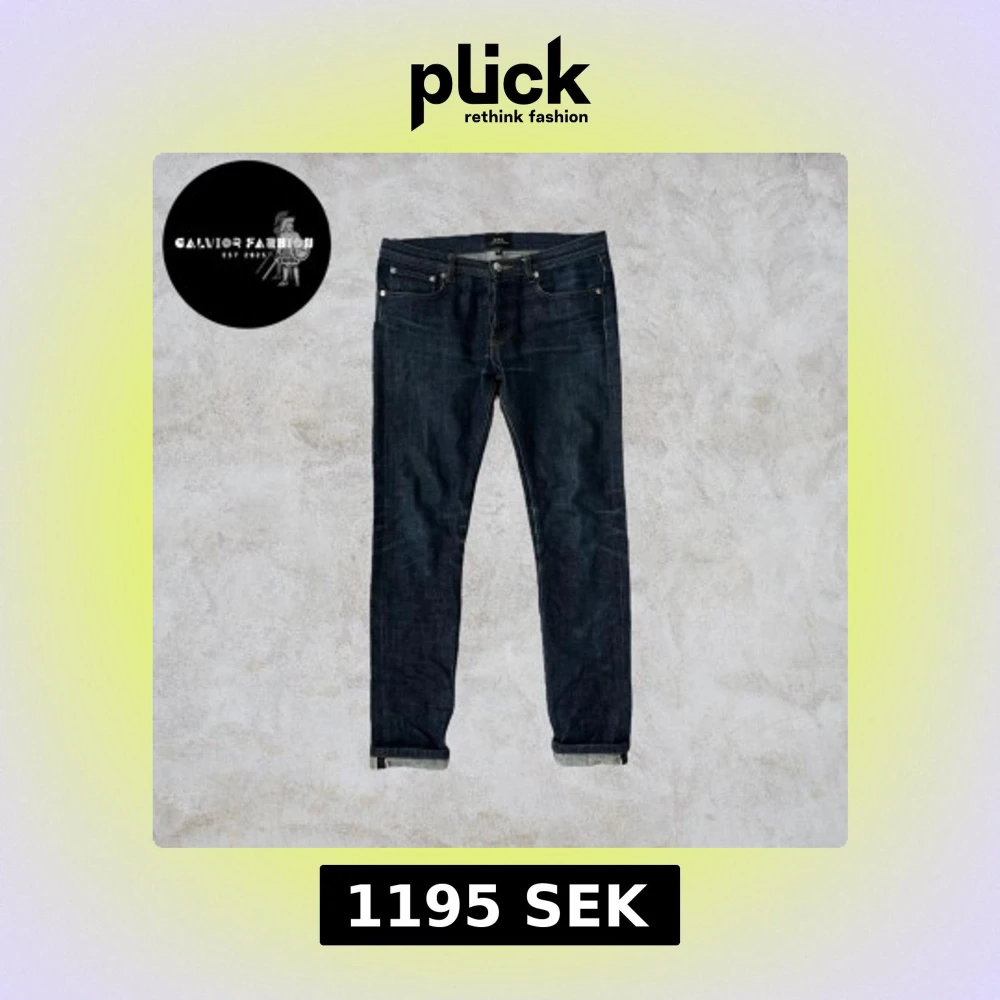 A.P.C selvedge jeans slim fit, W28 L ca 32 (passar även W29). Gjorda i rå japansk denim, knappt använda men börjar få snygga creases vid lår, fickor och knäveck. Ganska nya och därför fortfarande stela som ny. Redo att formas samt få patina och karaktärer efter dig. Pris 1 195 kr. Hör av dig för mått eller andra frågor. Följ! Alla följare får rabatt!