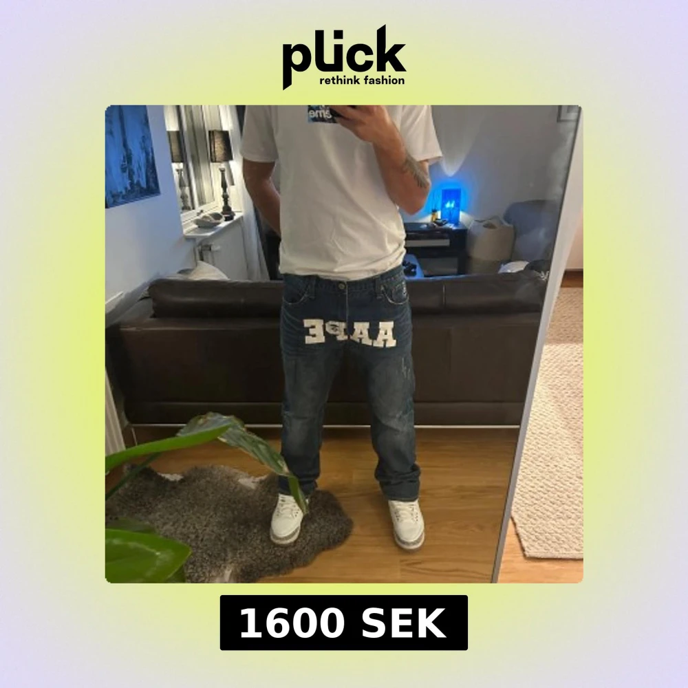 Riktigt najs byxor från AAPE, detta är mest en intressekoll. Coola camo detaljer på bakfickorna och lite röda detaljer, AAPE screenprint där framme, skulle gissa att det är typ w35, jag är w32 men funkar bra med bälte, kom med bud