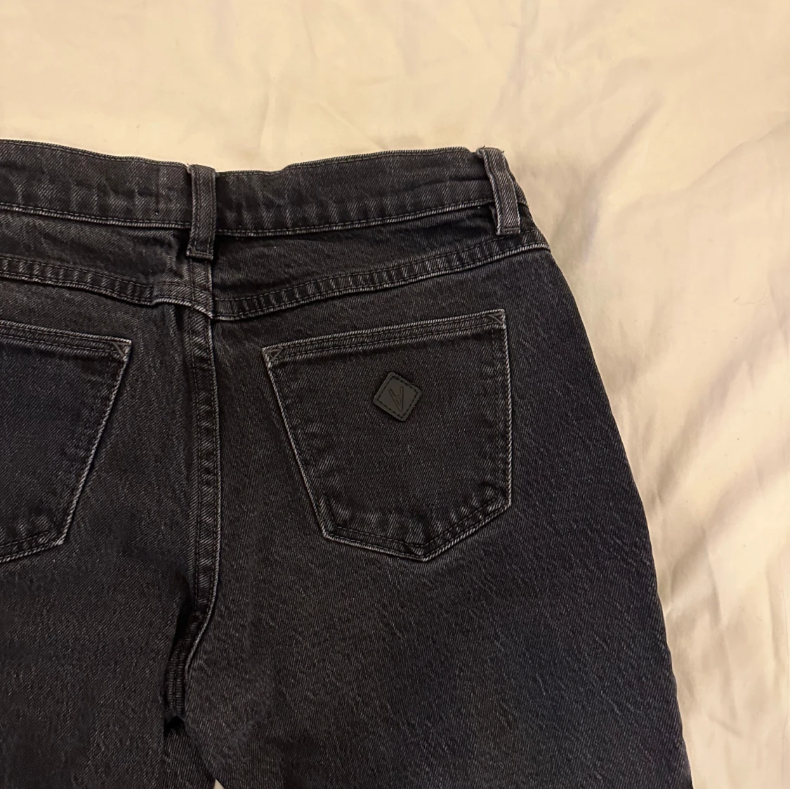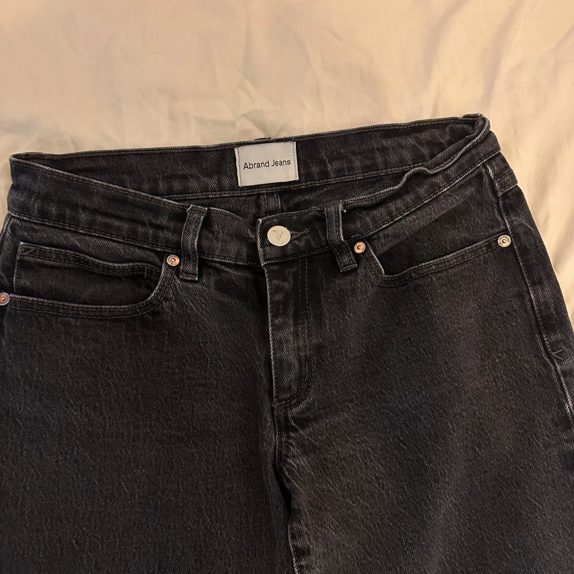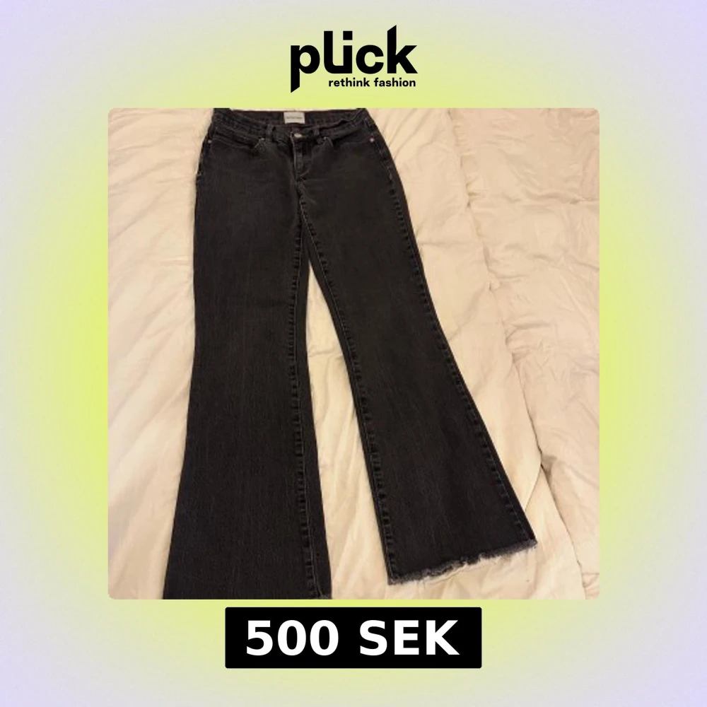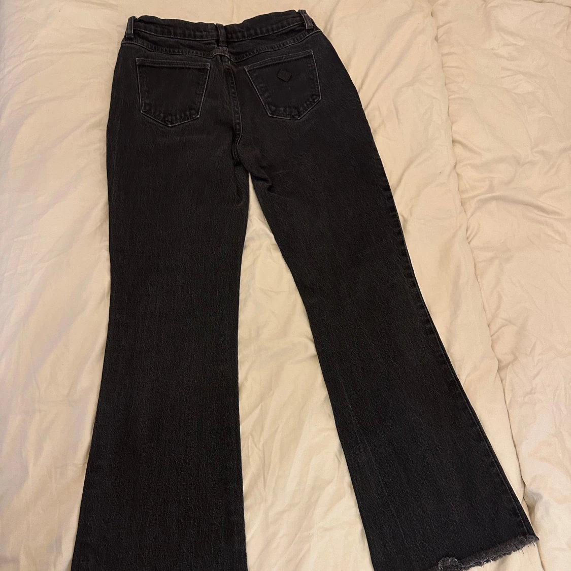 Snygga svarta jeans från Abrand med bootcut passform och frans kanter nertill. Dom är low waist