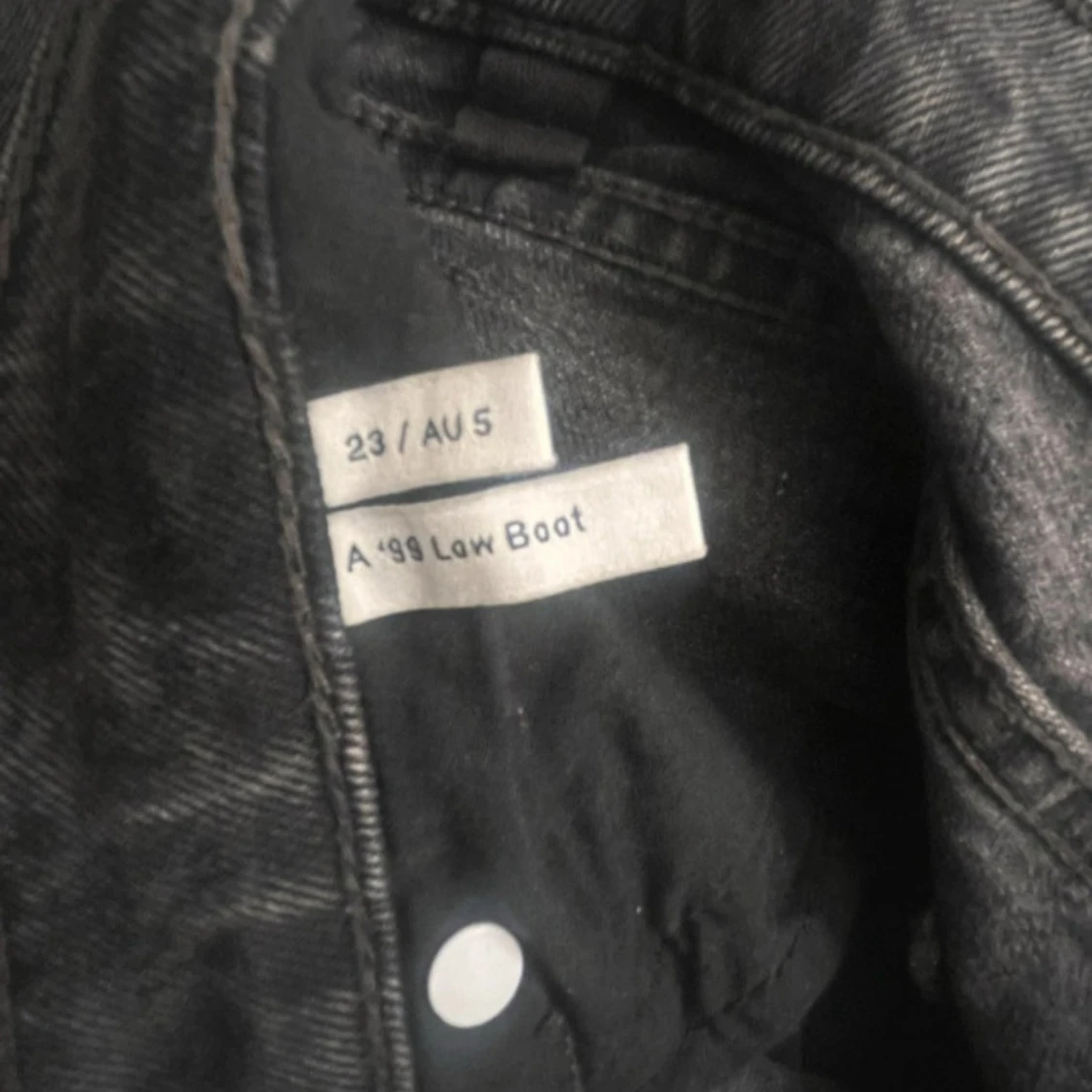 Säljer ett par lågmidjade svart/gråa bootcut jeans från Abrand, modell A 99 Low Boot. Använda fåtal gånger. Passar mig som har storlek 34. Jeansen har låg midja Materialet är denim och färgen är tvättad svart med en lätt sliten look. Skriv om du har några frågor. Ny pris 1099kr 💗