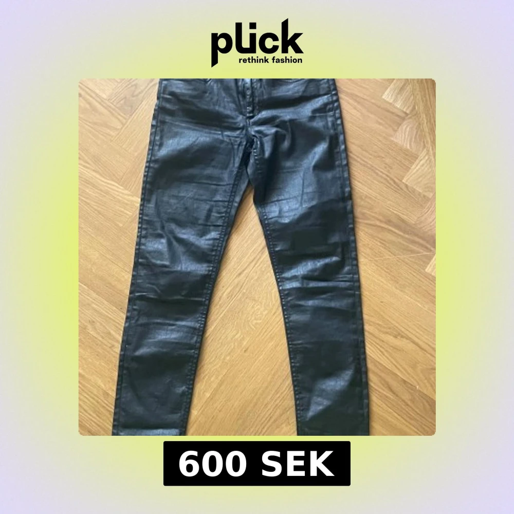 Säljer ett par svarta skinny jeans från Acne Studios, modell Skin 5 Mamba. Byxorna har en glansig finish och klassisk femficksdesign. Materialet är en mix av bomull, nylon och elastan för stretchig passform.