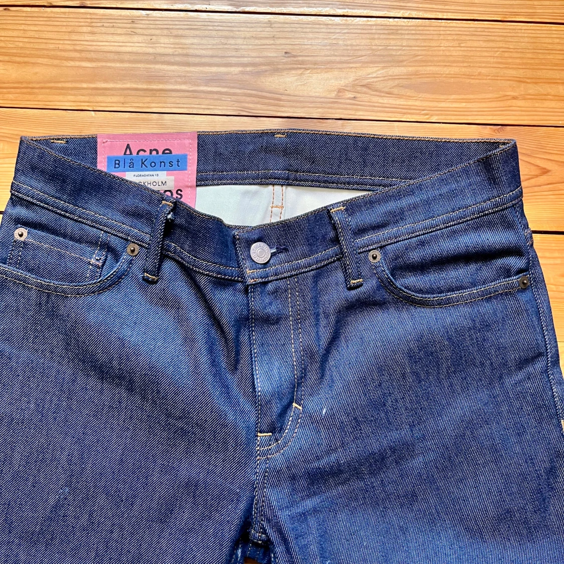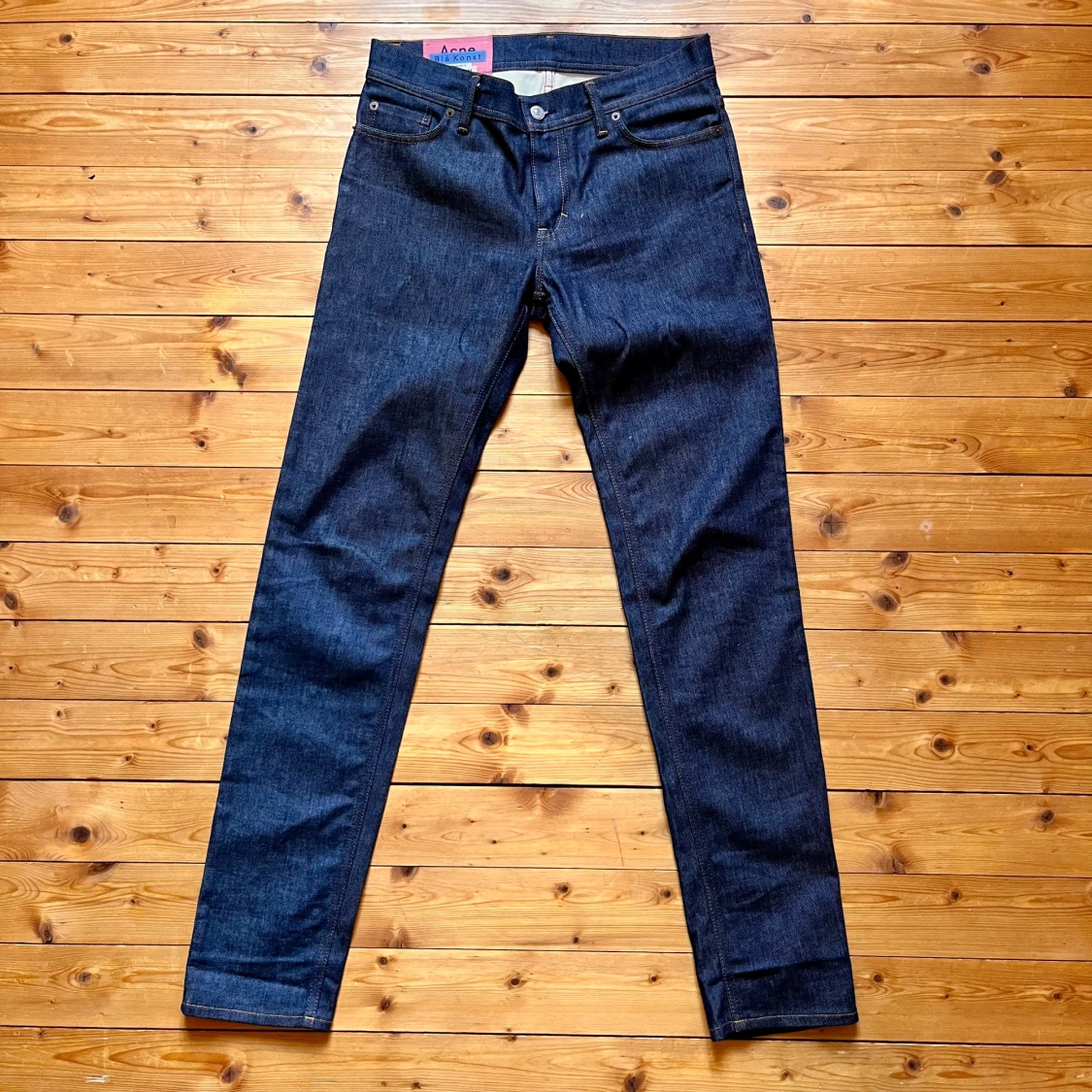 Snygga mörkblå jeans från Acne Studios Blå Konst med klassisk femficksdesign och raka ben. Jeansen är tillverkade i kraftig denim av bomull och har en stilren look med kontrastsömmar och hög midja. Perfekta för dig som gillar minimalistisk och tidlös stil.
