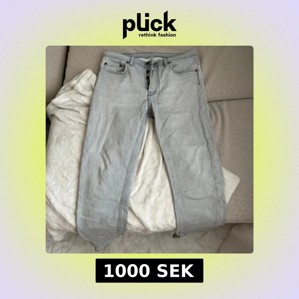 Snygga ljusgrå jeans från Acne Studios i klassisk femficksmodell. Jeansen har raka ben, knappgylf och stilren design med diskret logga på bakfickan. Perfekta för en clean och modern look.
