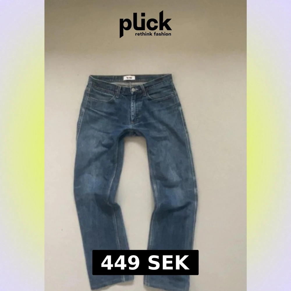 Säljer ett par klassiska blå jeans från Acne, de är riktigt snygga med den perfekta pass formen. Modellen är Max raw och är självklart 100% bomull. Vid snabb affär kan priset ändras! Sparsamt använda jeans.