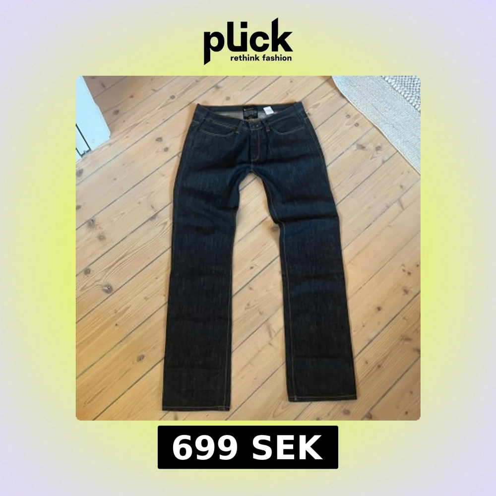 Säljer ett par mörkblå Acne Action Jeans Max Raw i klassisk rak modell. Jeansen är raw vilket innerbär att de kommer kunna få feta fades med tiden. Perfekta för dig som gillar stilrena och tidlösa jeans. Tyvärr saknas bakre patch, Men annars helt oanvända. Hör av er vid frågor!