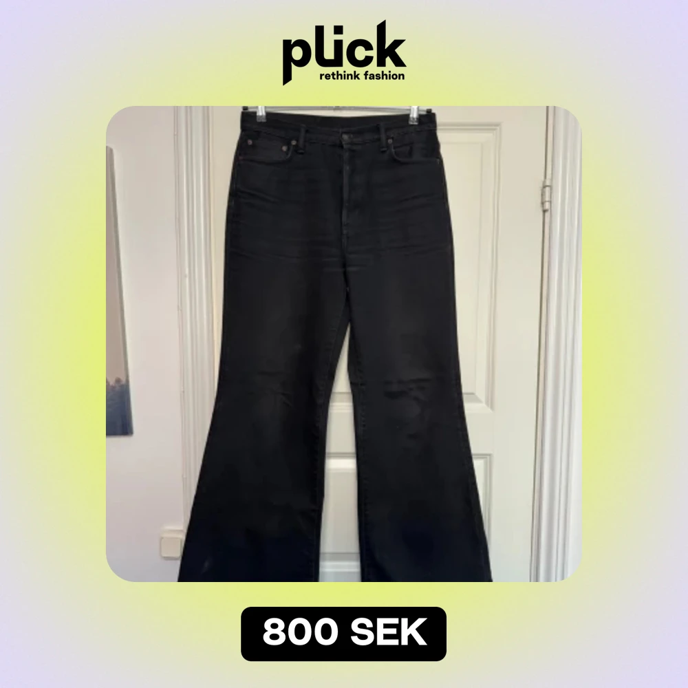 Acne jeans med bootcut köpta 2022, lite healdrag samt ett litet hål som börjar komma fram vid skrevet, går att laga väldigt enkelt. Förutom det i ett bra skick. Condition 6.5/10