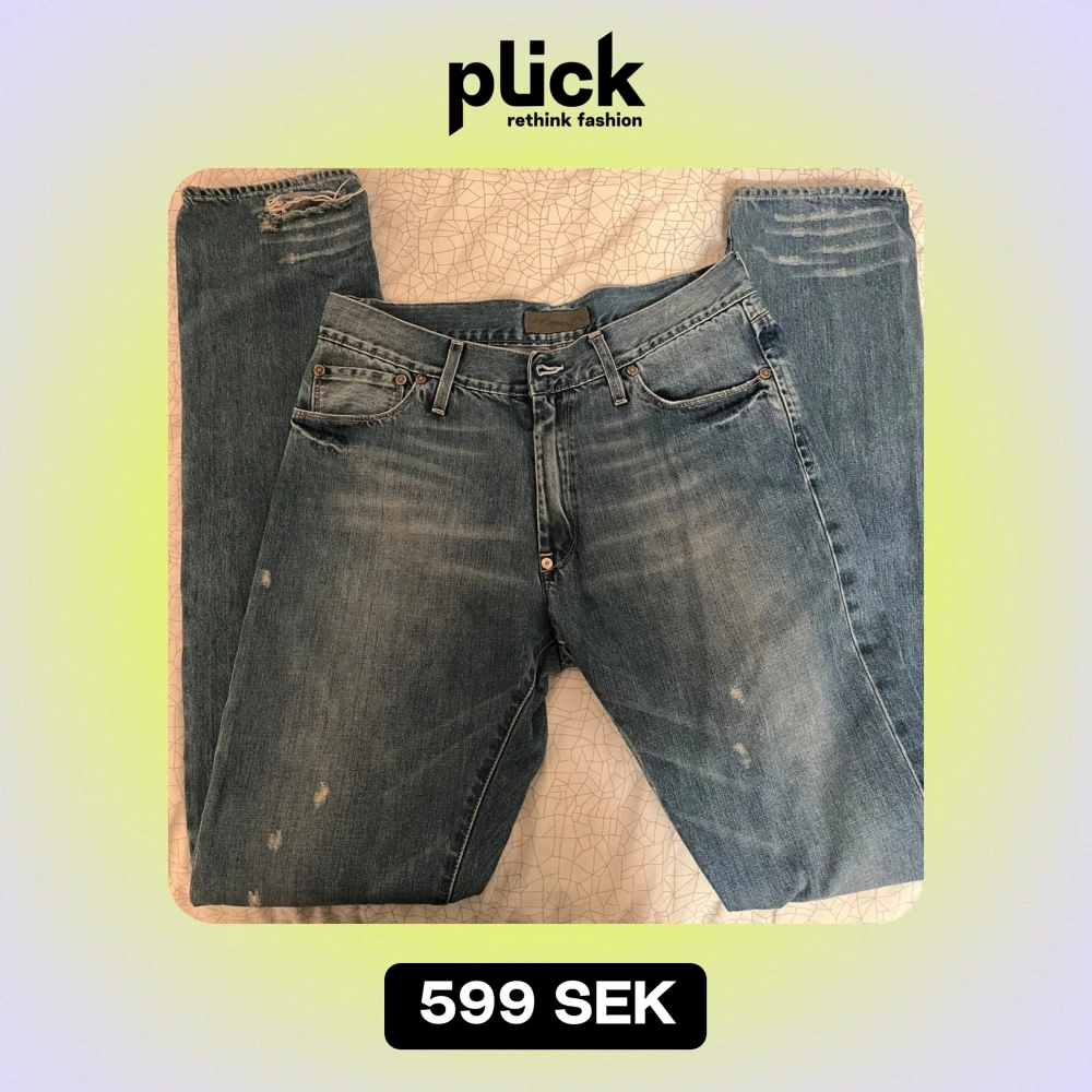 Snygga blåa ACNE jeans för män i storlek 30/34. Fina detaljer med små slitningar och annars mycket bra skick. Vid snabb affär kan prissänkning ske. Dock saknas knappen där fram men med bälte så syns det inte!