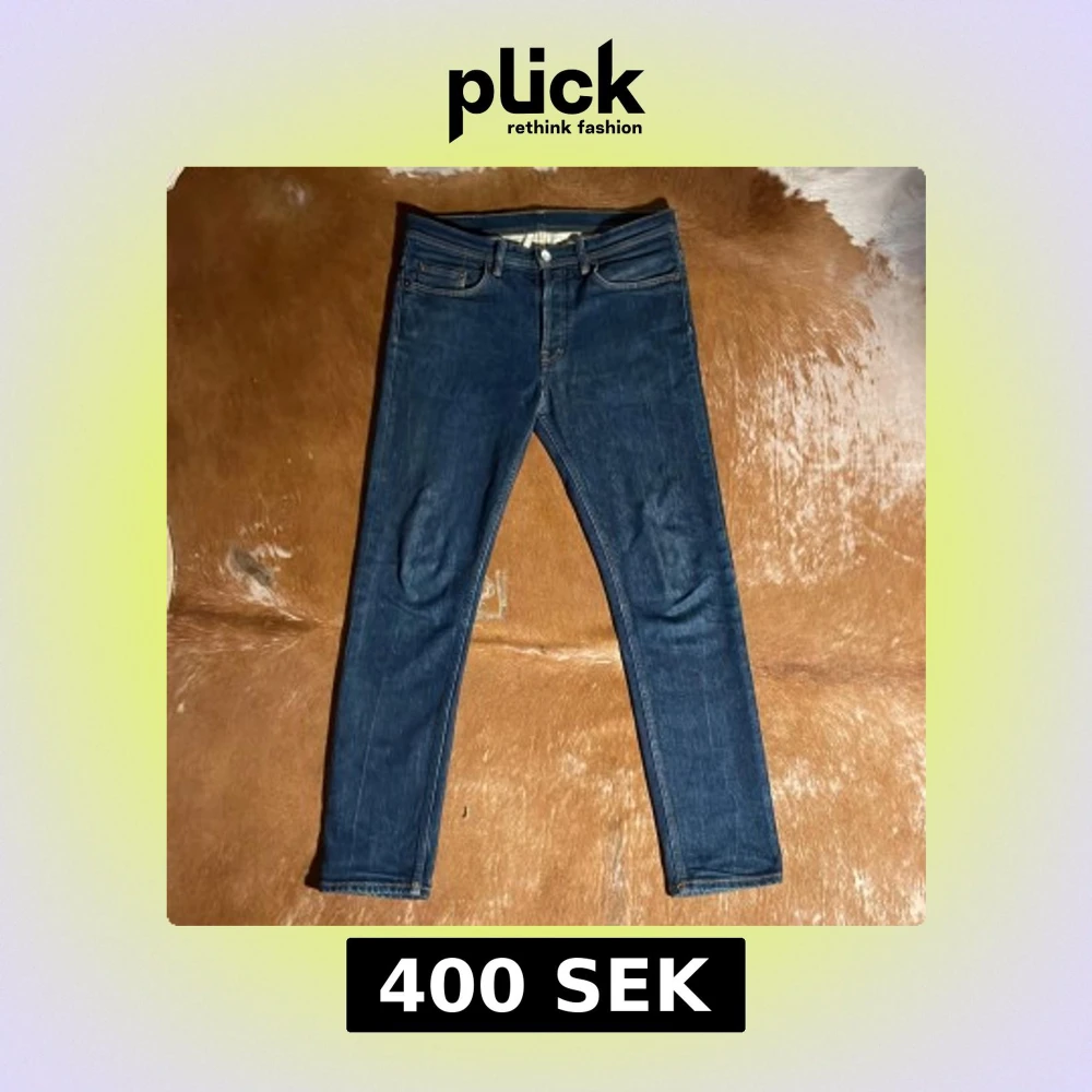 Ett par sköna acne jeans i färgen indigo blue. De är i princip i nyckick förutom en liten fläck på knäet men det är inget som märks av vid användning. Modellen på bilden är 187 och väger 70 kilo. Jeansen är i storlek 31/34 men sitter mindre, skulle säga 30/32. Kom dm för fler bilder osv.