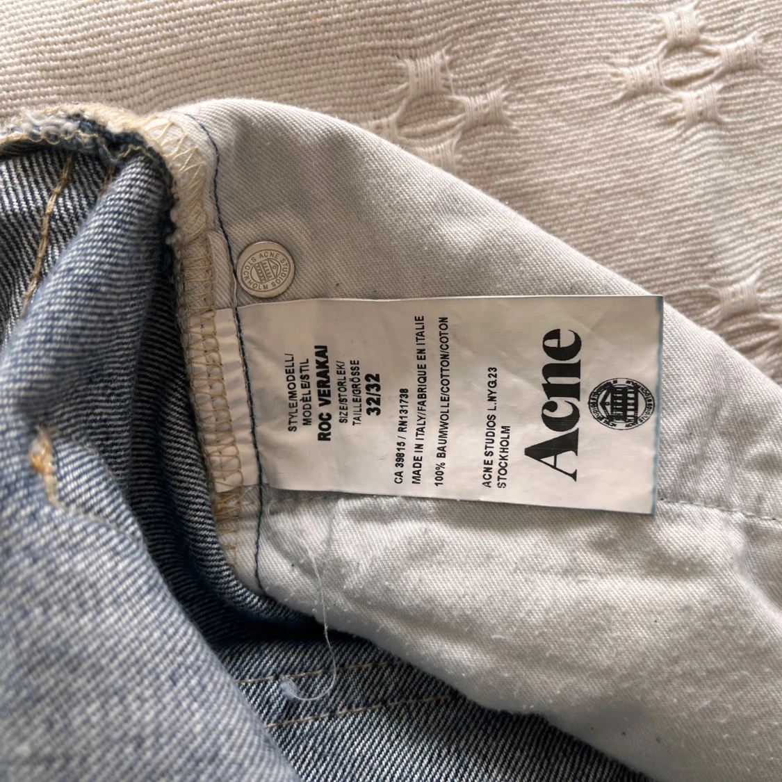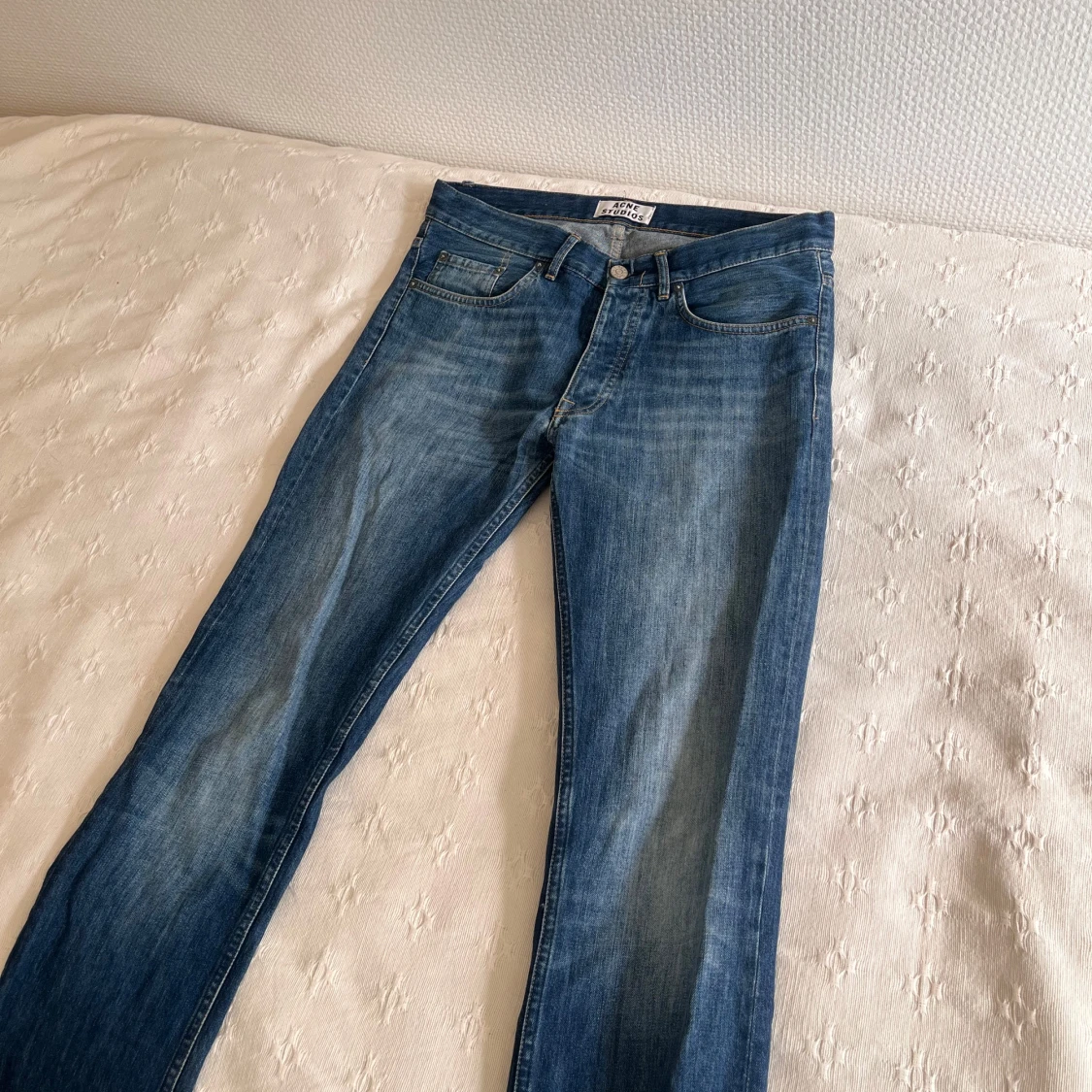 Blå jeans från Acne Studios, modell Roc Verian. 32/32. Har ett till par som är mina absoluta favorit jeans. Kan vara dem bästa jeansen acne släppt. Ett litet hål där bältes öglan satt fast, det går fortfarande att trä ett bälte genom den öglan.