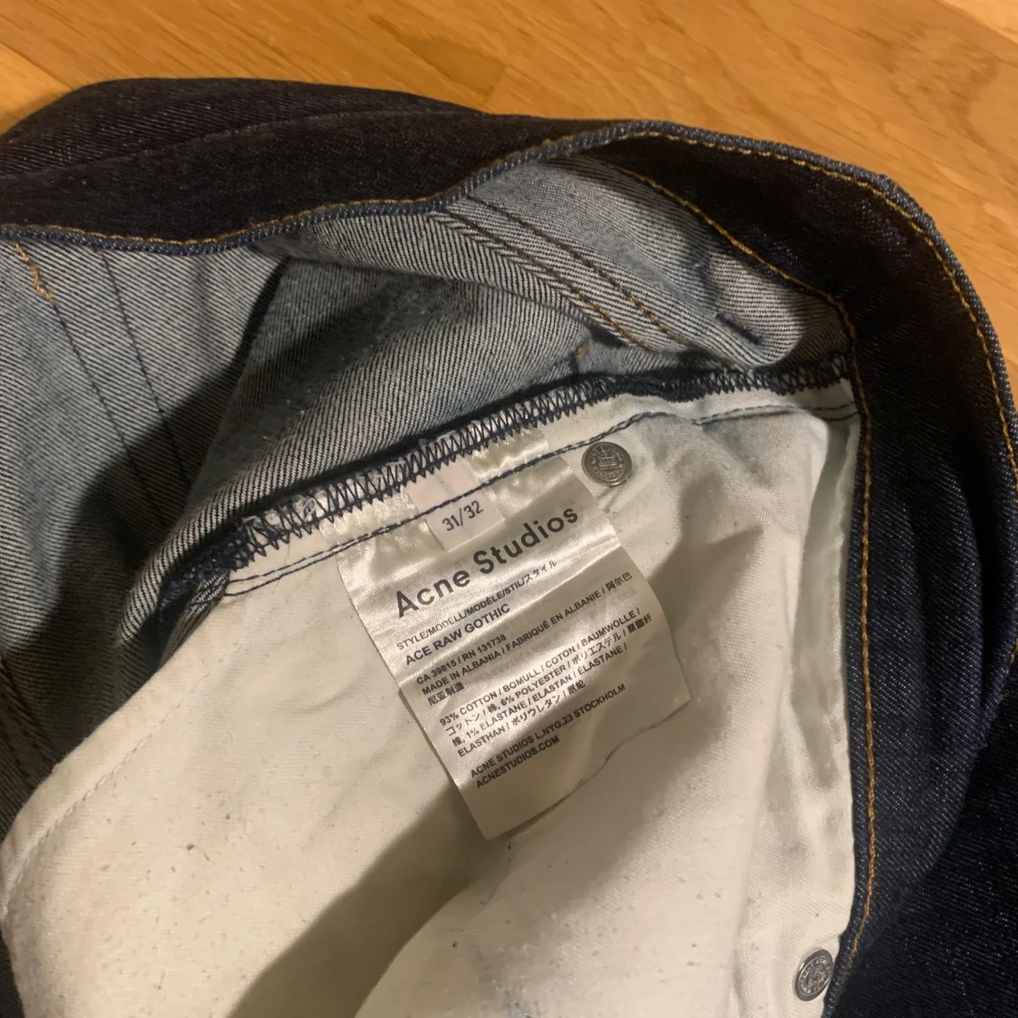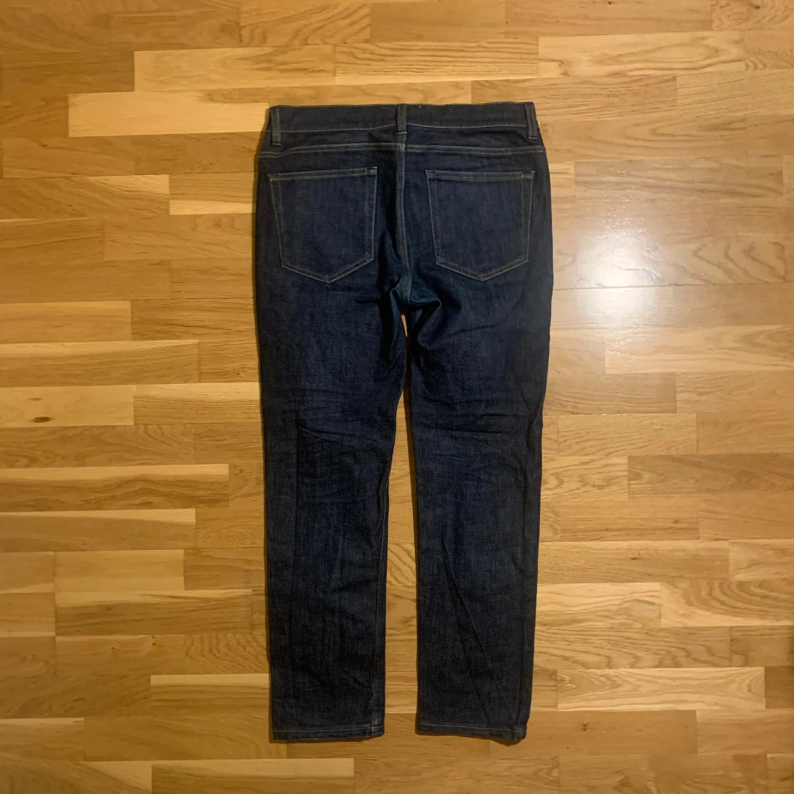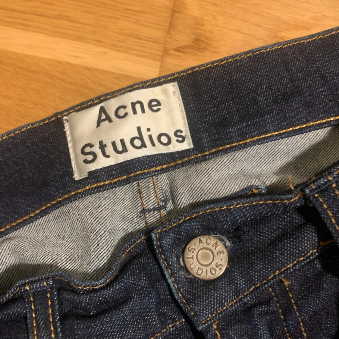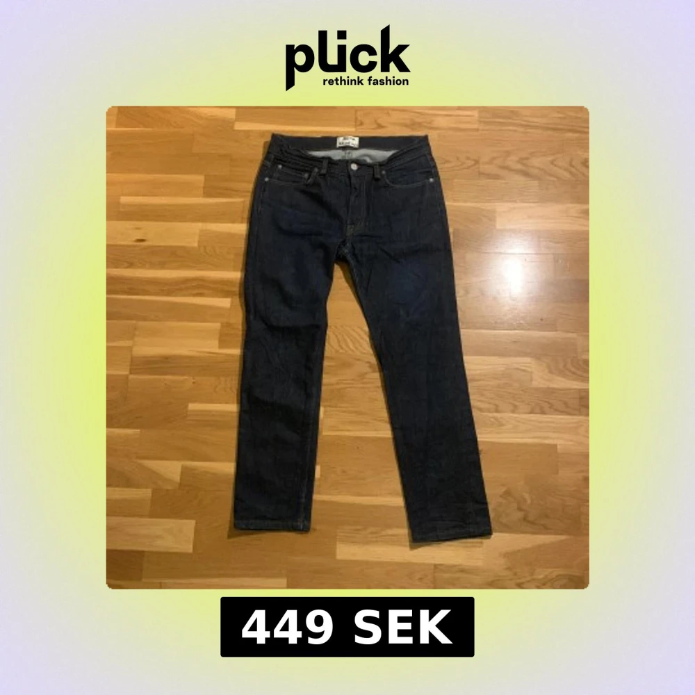 Snygga mörkblå jeans från Acne Studios i klassisk design. De har en rak passform och är tillverkade i högkvalitativt denim. Perfekta för en stilren look nu i vintern och kommande våren! Ifall mer bilder eller frågor så var inte rädda att skriva 🤝