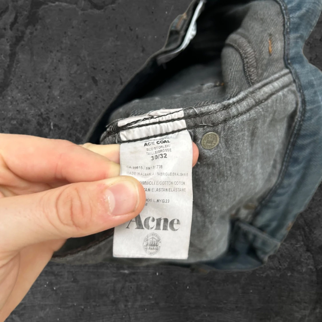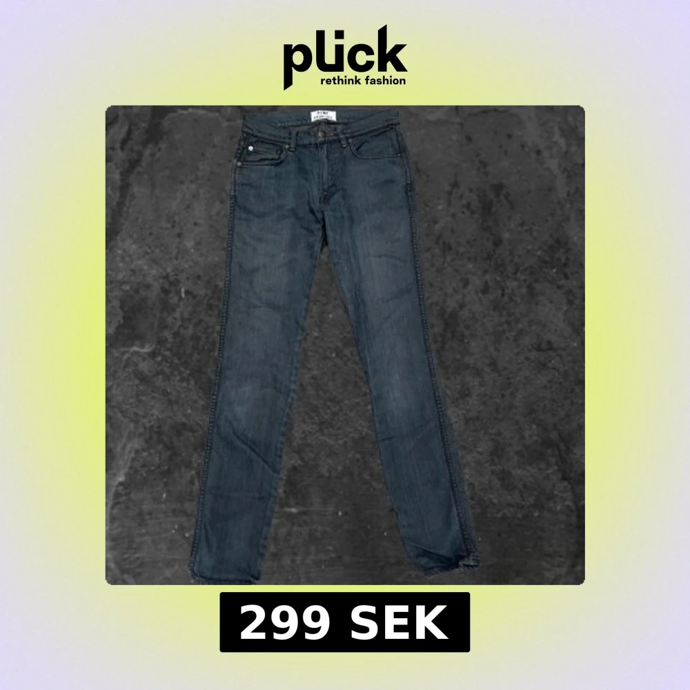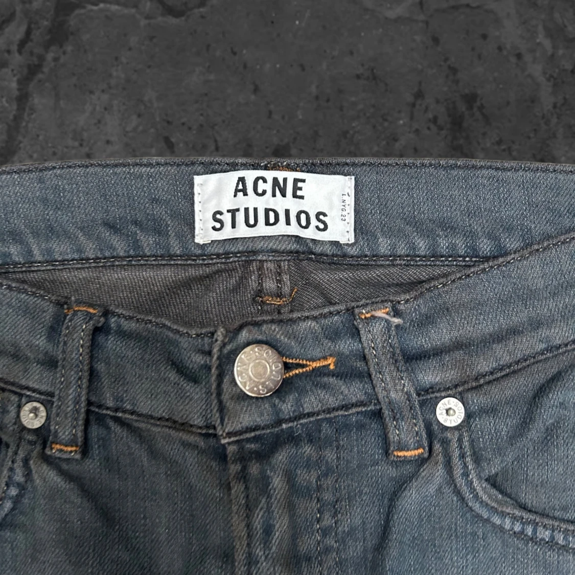 Mörkblå raka jeans från Acne Studios, modell Ace Coral. Klassisk femficksdesign med orangea sömmar och metallknappar. Tillverkade i bomull med lite elastan för extra komfort. Perfekta för dig som gillar stilrena och tidlösa jeans.