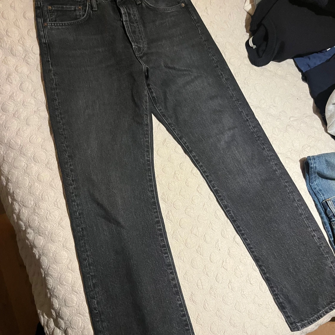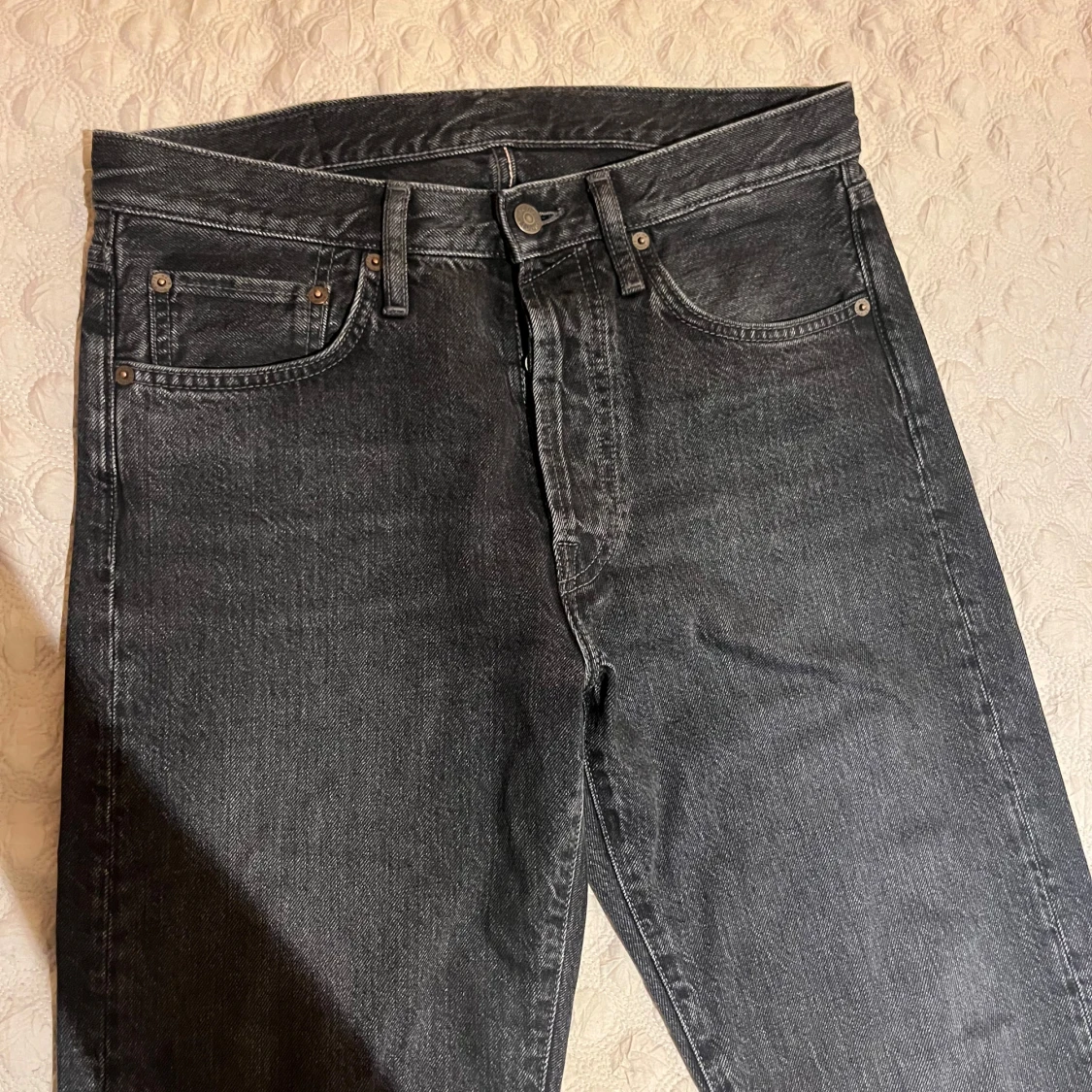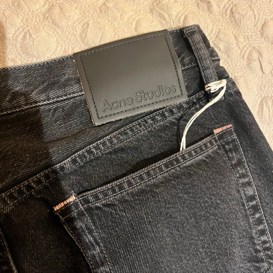 Snygga svarta jeans från Acne Studios med klassisk femficksdesign och raka ben. Jeansen har en mörk tvätt och subtila kontrastsömmar. Perfekta för dig som gillar en clean och stilren look. Materialet är robust denim i bomull. Helt nya aldrig använda nypris 3795