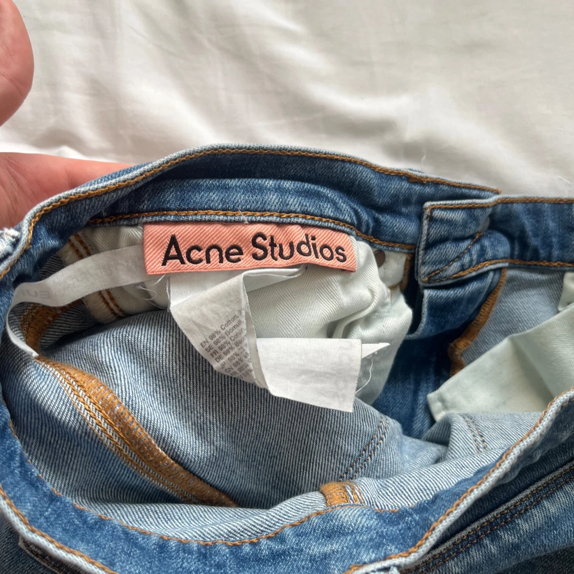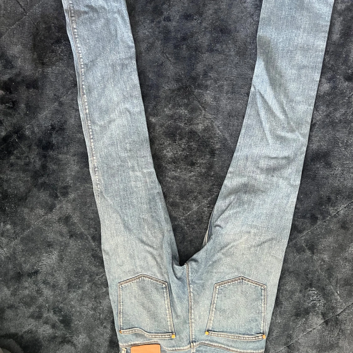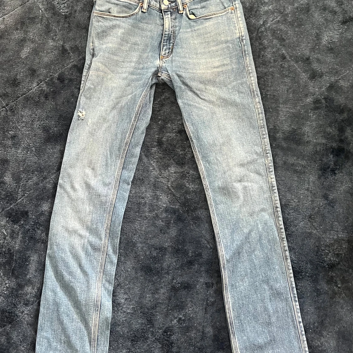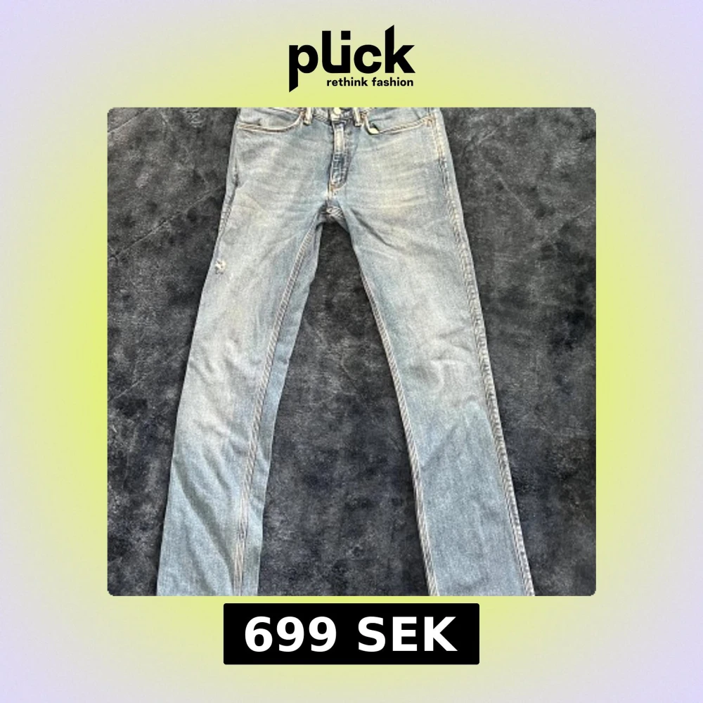 Säljer ett par klassiska ljusblå jeans från Acne Studios i storlek 31:32 men de passar mer som en 30:32. Har dock lite flex så större midja funkar också. Slim fit med en slitning. Hör av er för fler frågor. Mvh Charlie