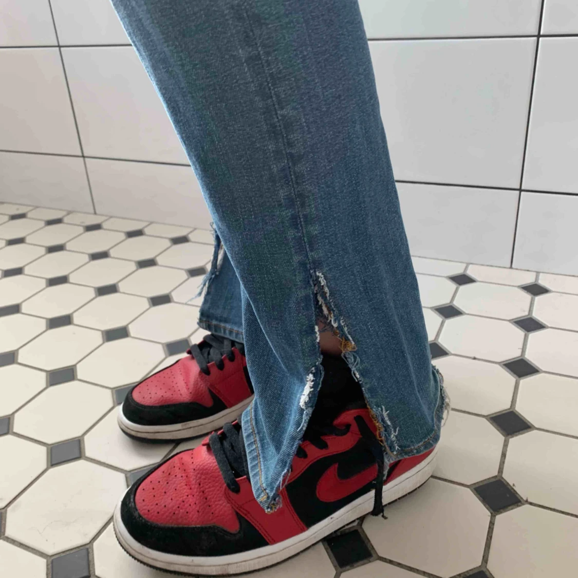 Skitsnygga Acnejeans med en slits på sidan. Liknar jeansen från Zara som är slutsålda. Frakt tillkommer🥰🦋