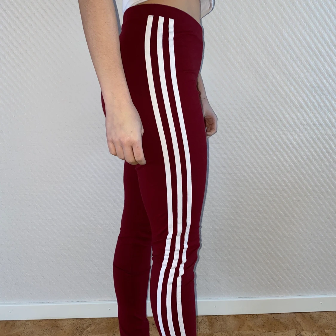 Vinröda Adidas originals leggings, strl 34