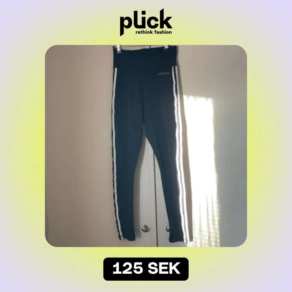 Träningstights från adidas med tre ränder på sidan. Skönt material och fint skick då det endast är använt ett fåtal gånger. Storlek XS men passar S bättre💗 Kan säljas tillsammans med adidasjackan(se min profil) för ett lägre pris☺️