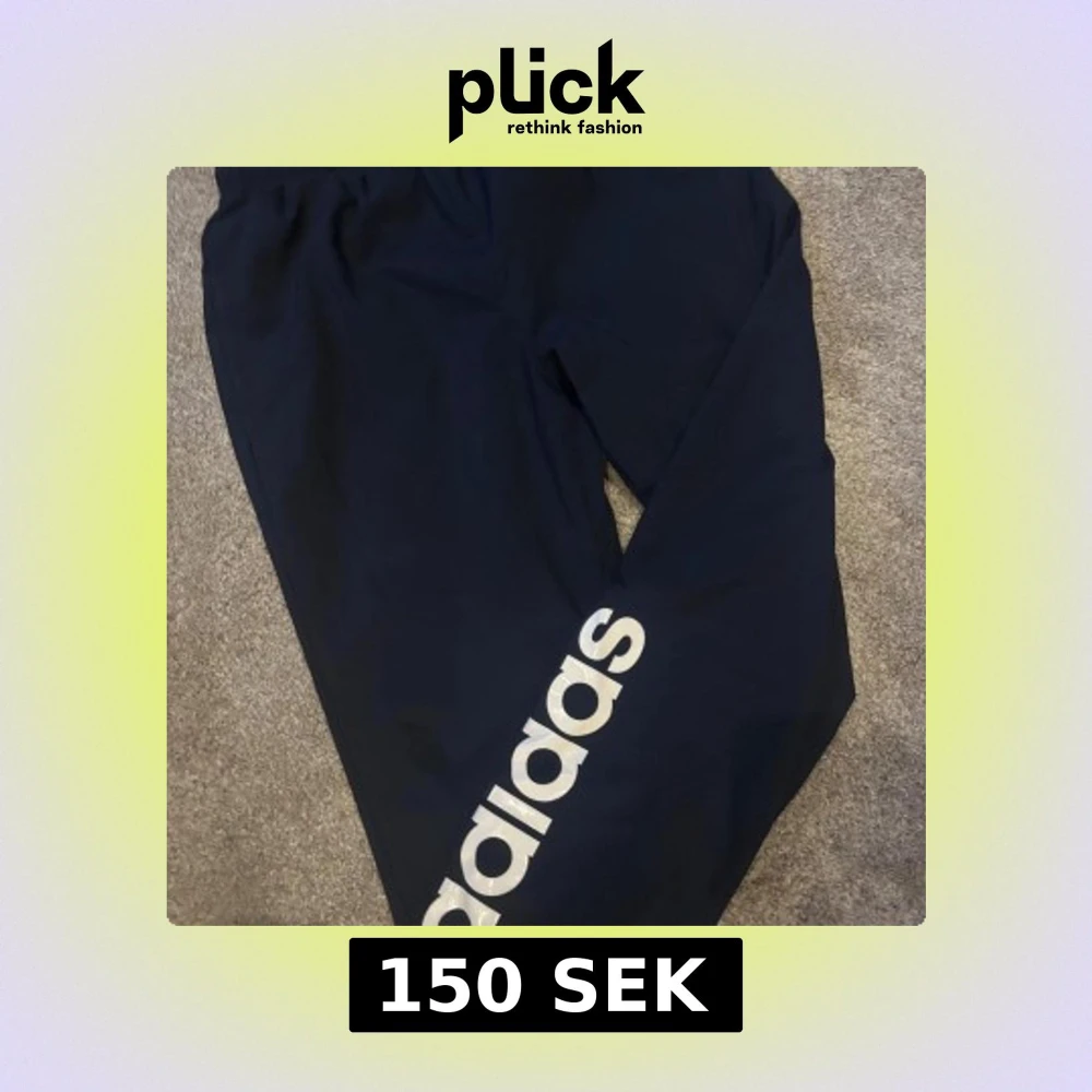 Snygga svarta träningsbyxor från Adidas med stort logotryck längs benet. Perfekta för träning eller en avslappnad dag. Byxorna har en elastisk midja för extra komfort.