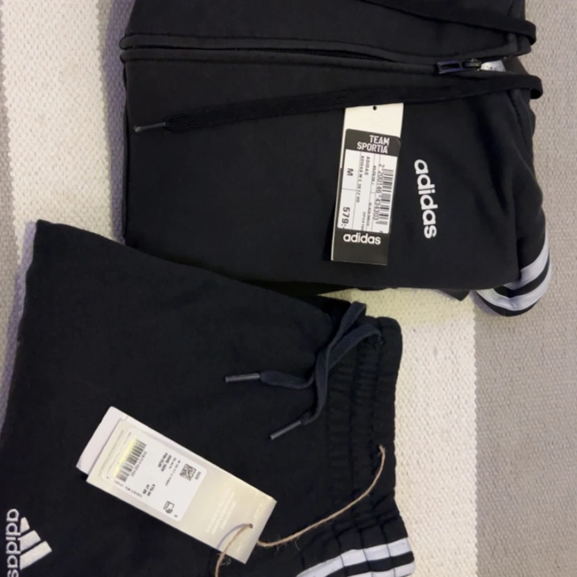 Koftan är i st M passar samt S, byxorna är i S passar också M. Fint skick, kvitto och etiketter medföljer vill ni ha mer info dma