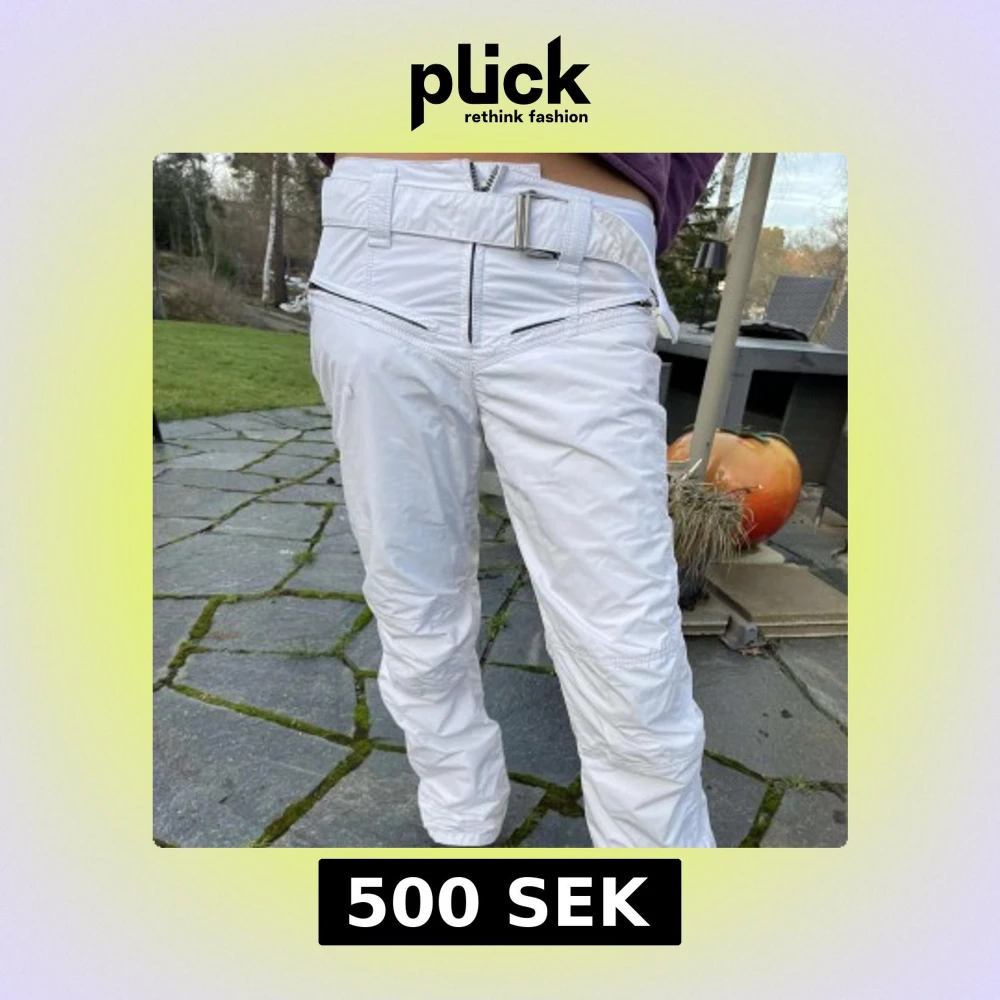 Snygga vita byxor med hög midja och ett brett bälte. Byxorna har dragkedjedetaljer och en modern design som är perfekt för en trendig look. Så fina som passar alla överdelar. Perfekt till afterski