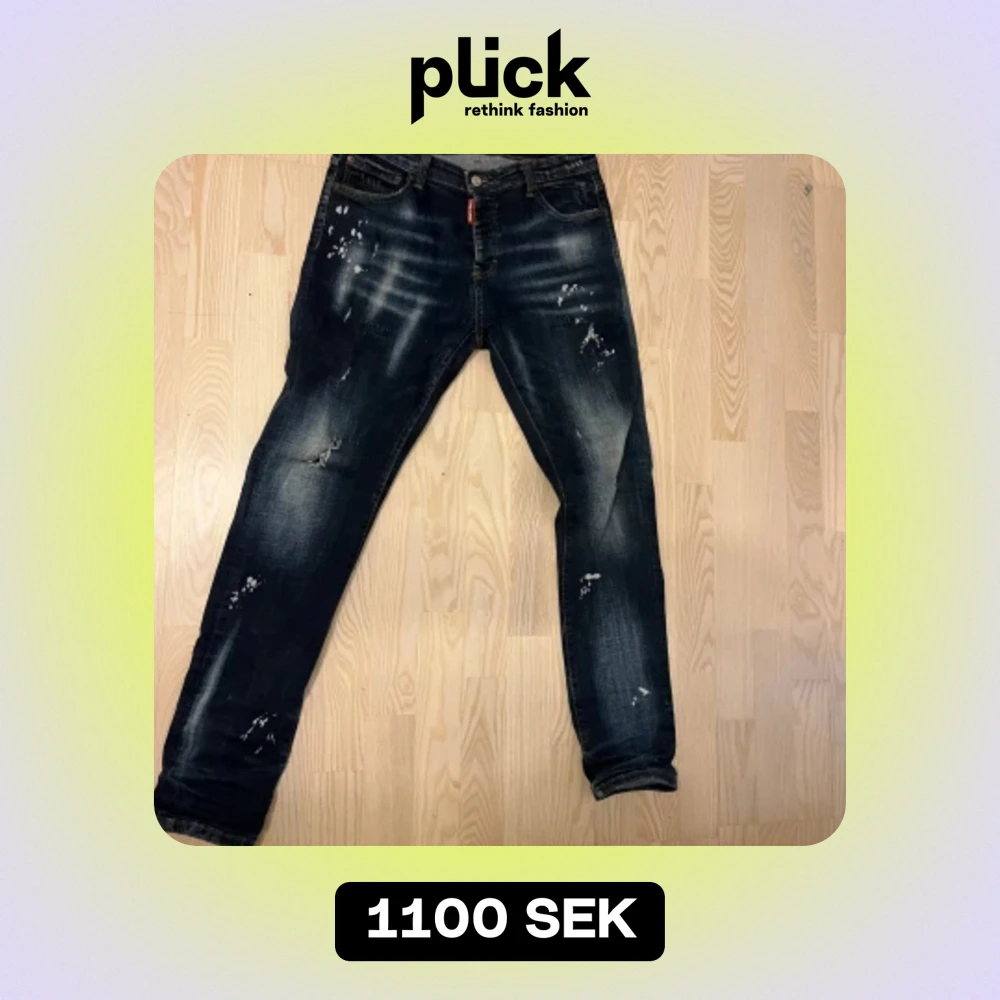 Hej! Säljer mina desquerd Jeans dom är äkta o storlek 48 det är bra skick men lappen på röven har ramlat av som ni ser o lappen inutti är lite sliten annars jätte fina o bra utanpå