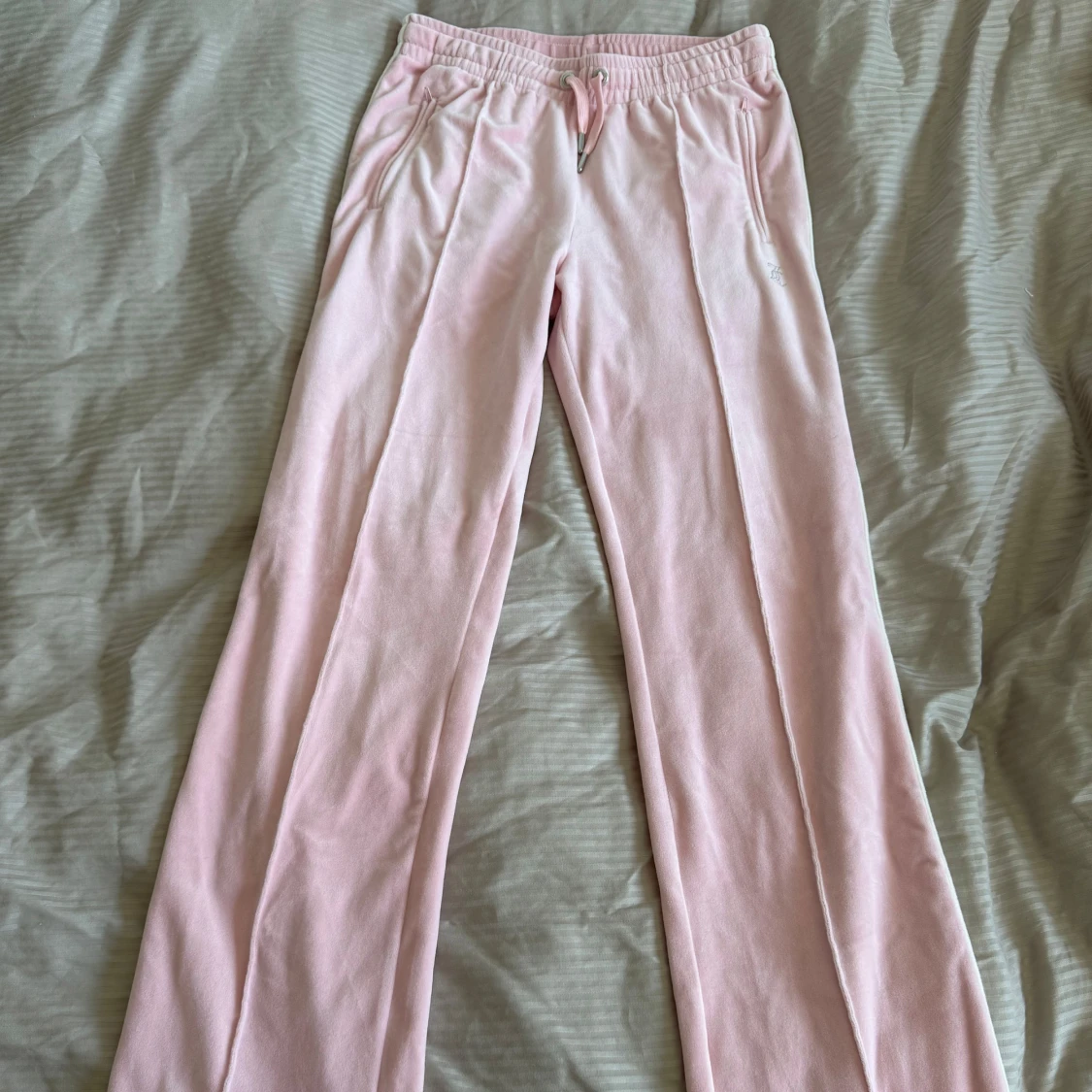 Säljer mina äkta ljusrosa mjukisbyxor från Juicy Couture med logga baktill. Byxorna har dragsko i midjan och raka ben. Aldrig använda.