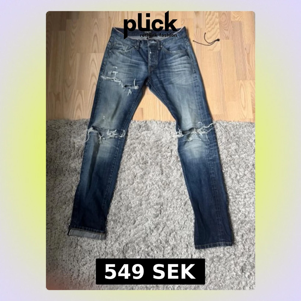 Säljer ett par selvedge jeans från Earnest Sewn med slitningar. De är i utmärkt skick utöver slitningarna vilket är mer för design. Storlek 29.