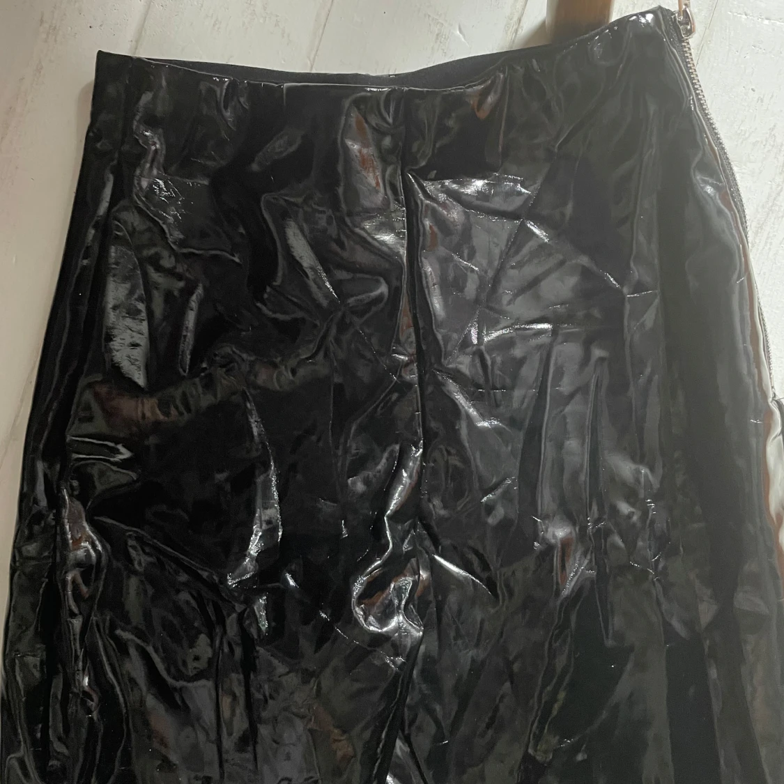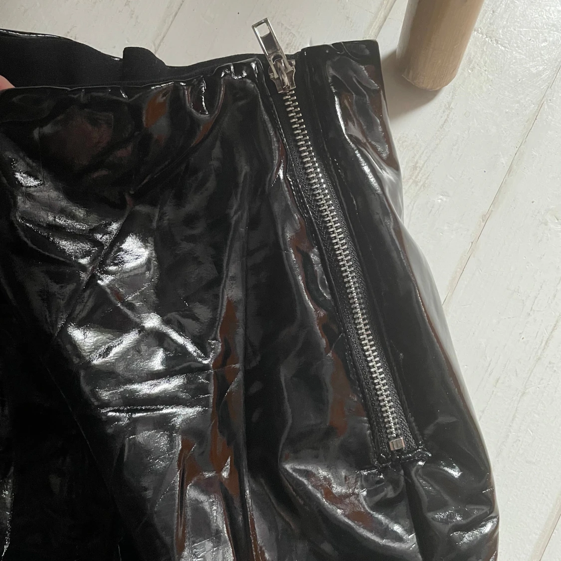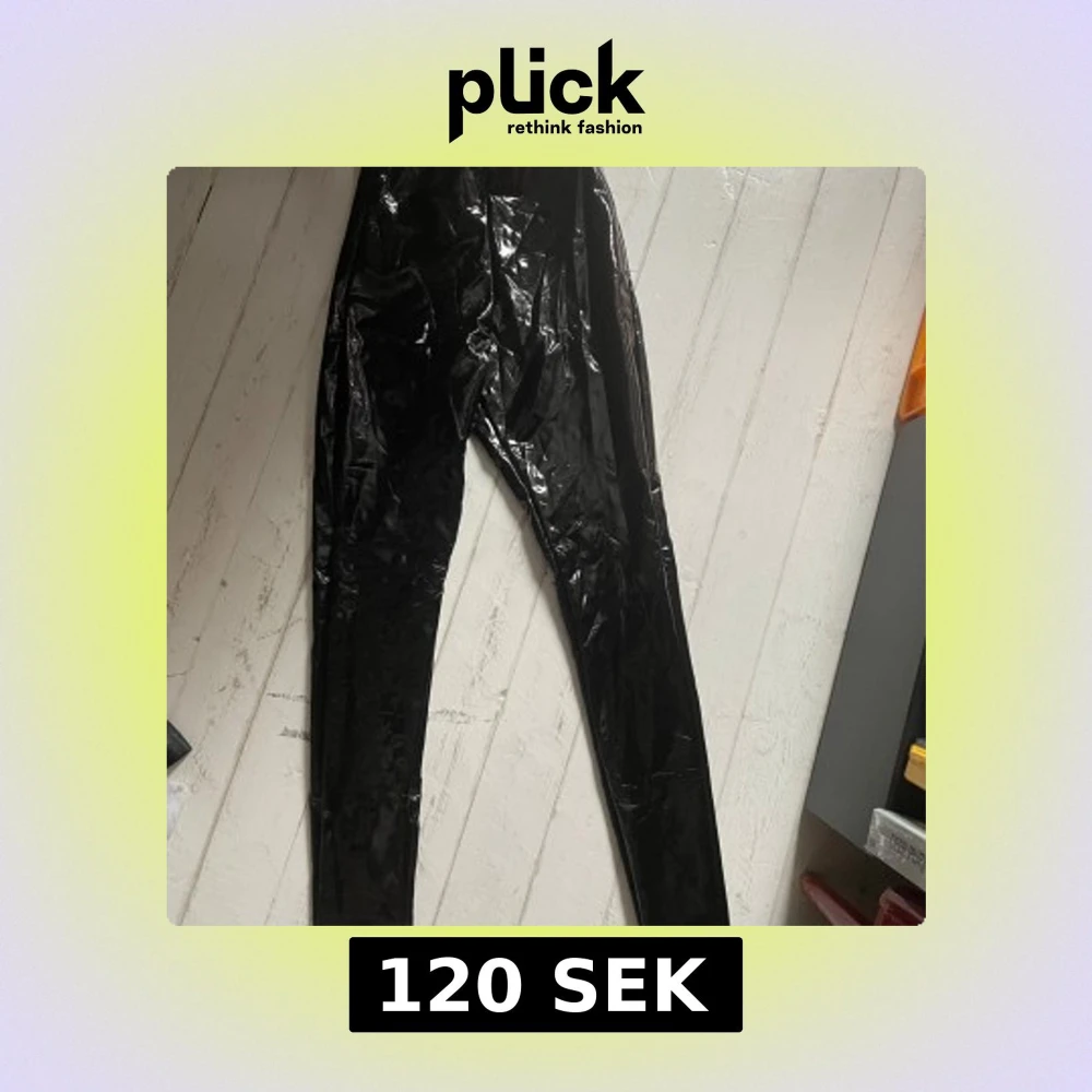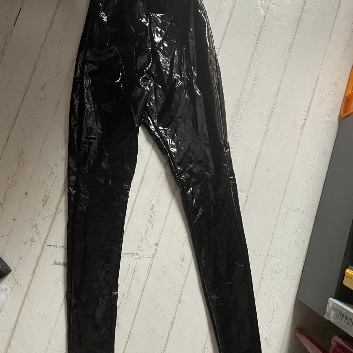 Vinyl byxor från new look. Skulle tro att dessa passar någon i XS bäst. Jag kan mötas upp i Uddevalla centrum, annars fraktar jag gärna. Köparen står för frakten. (Står ej för postens slarv) katt finns i hemmet.