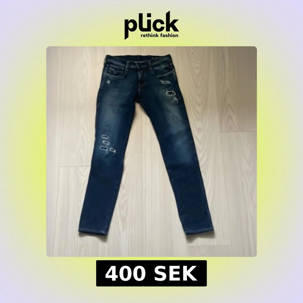 Snygga Replay Anbass jeans i mörkblå tvätt med slitningar och skinny fit. Klassisk femficksmodell med detaljerade bakfickor och tydliga slitningar framtill. Märkespatch bak i midjan. Perfekta för dig som gillar en smal siluett och coola detaljer.