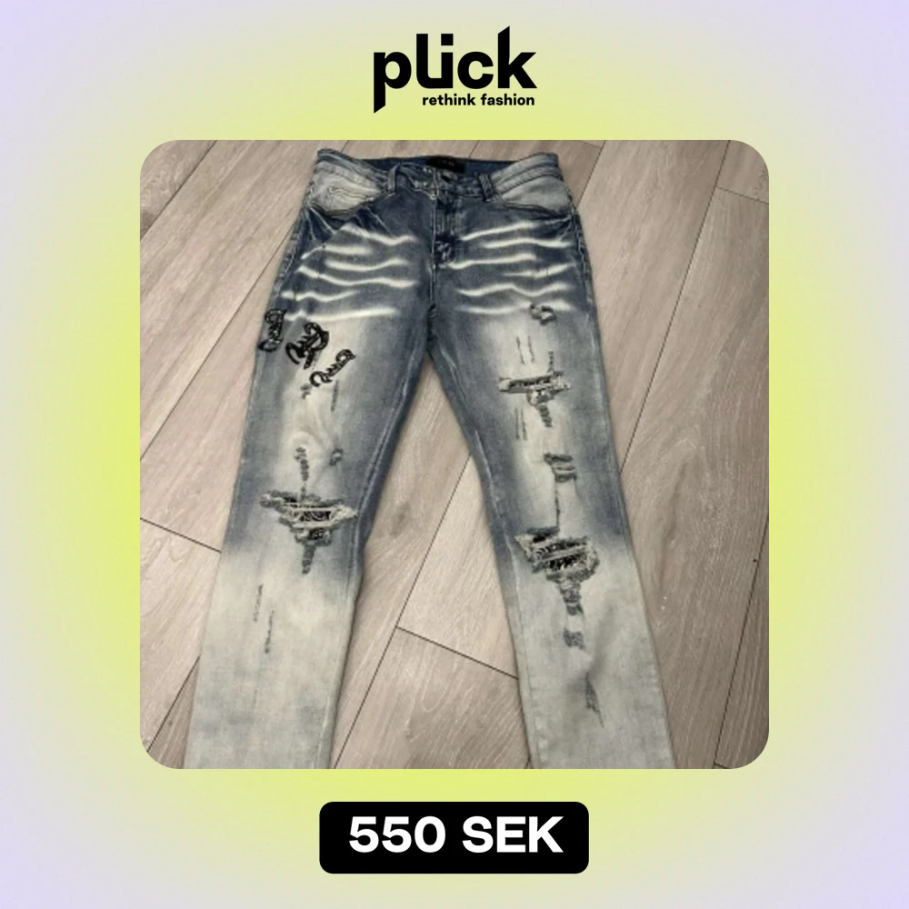 Säljer amiri jeans i storlek 32 då de inte passar min son längre jeansen är i bra skick och har inga brister