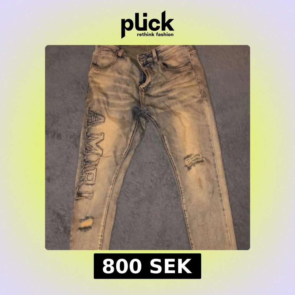 Snygga skinny jeans från AMIRI i ljusblå tvätt med slitningar och broderad AMIRI-logga längs benet. Jeansen har klassisk femficksdesign, dragkedjegylf och är tillverkade i bomull. Perfekta för dig som gillar streetwear med edge.