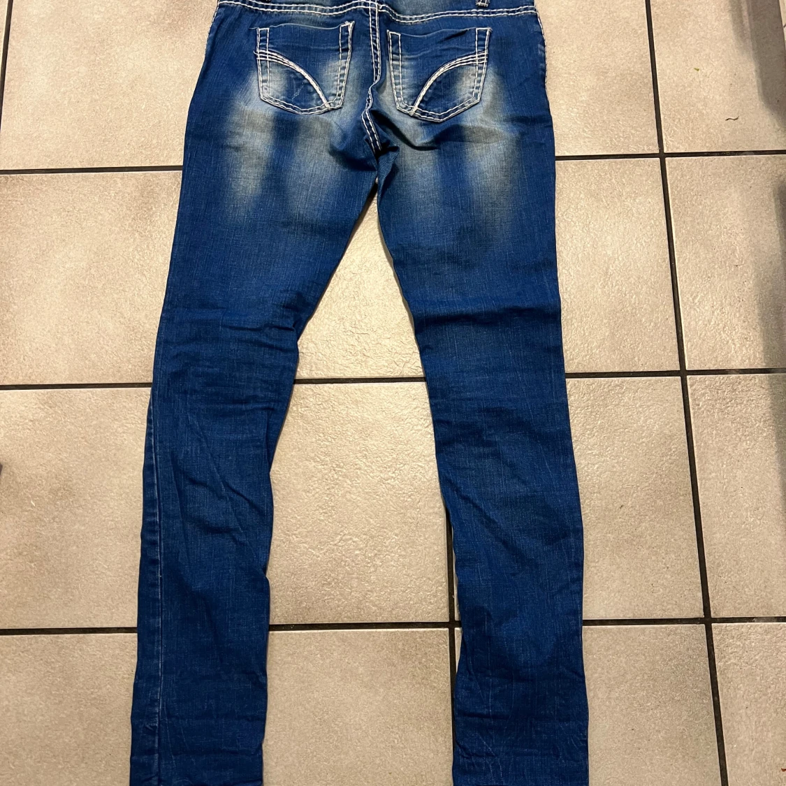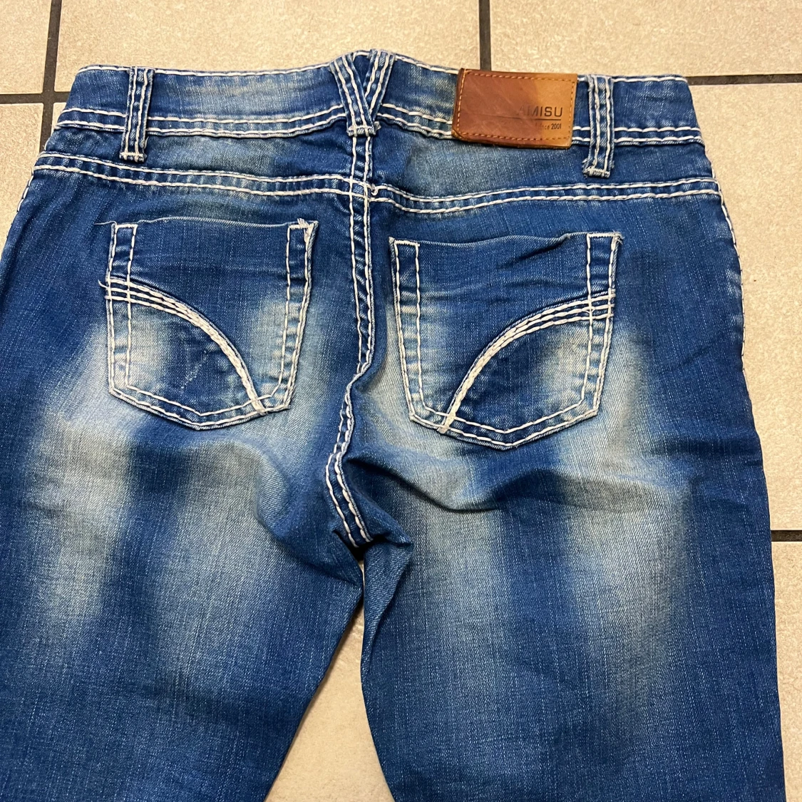 Snygga blå jeans från Amisu med en klassisk femficksdesign och kontrasterande vita sömmar. De har en knapp och dragkedja framtill och en lätt slitning för en trendig look. Perfekta för en avslappnad stil.