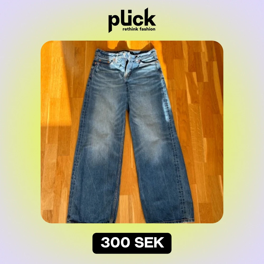 Säljer dessa fina mörkblåa jeans från weekday. Det är i jätte bra stick och är nästan oanvänd i storlek 25/32!