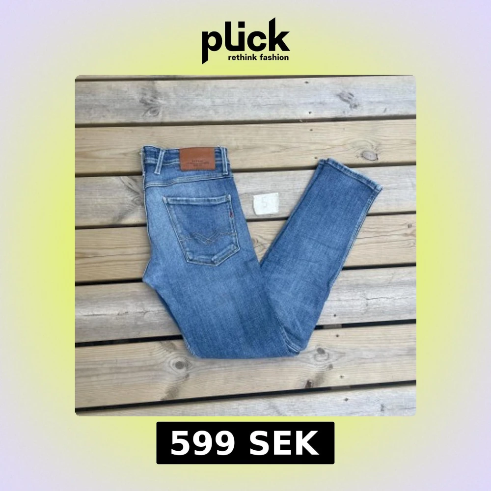 Snygga ljusblå Replay Anbass jeans med klassisk femficksdesign och diskreta slitningar framtill. Jeansen har normal passform, raka ben och detaljer som Replay-logga på myntfickan och läderpatch bak i midjan. Perfekta för en avslappnad och trendig look.
