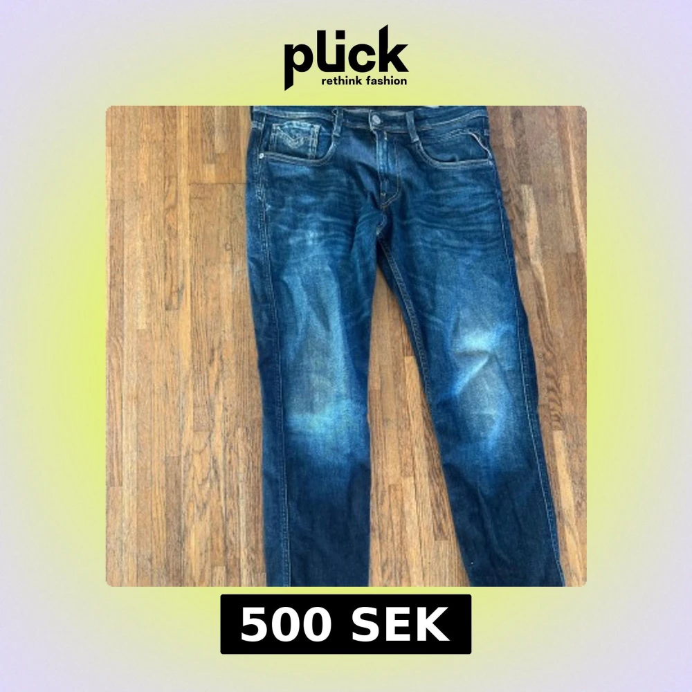 Säljer ett par Replay Anbass slim fit jeans i klassisk blå tvätt med snygga slitningar och kontrastsömmar. Jeansen har fem fickor, läderpatch bak och coola detaljer på bakfickorna. Perfekta för dig som gillar en smalare passform och stilren look. Storleken är 31/32 w31 L32. Det finns ett pytte litet hål som inte syns, om ni har fler frågor meddela gärna!