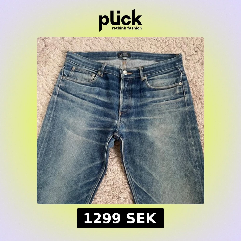 Tja säljer dessa feta selvedge jeans från apc i storlek 31. Midja - 43cm. Ytterben - 111,5cm. Fot 18cm. Fint skick med feta tvättningar och slitningar, hör av dig vid frågor.