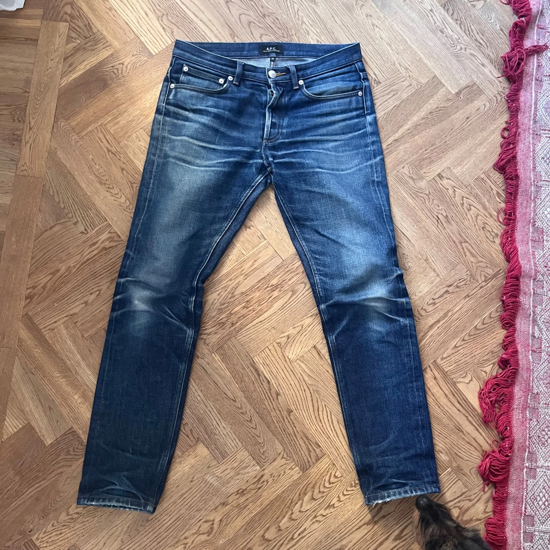 APC Petit New Standrad. Storlek W29 L30. Extremt bra skick. Dom är gjorde i japansk selvedge rå denim och dom har utvecklat en galen, jag skulle säga att det är dom fetaste jeansen på plick. Köpta i Paris har tyvärr inte kvittot kvar. Nypriset ligger runt 3300kr. Byten Kan vara intressanta och priset är inte fast.