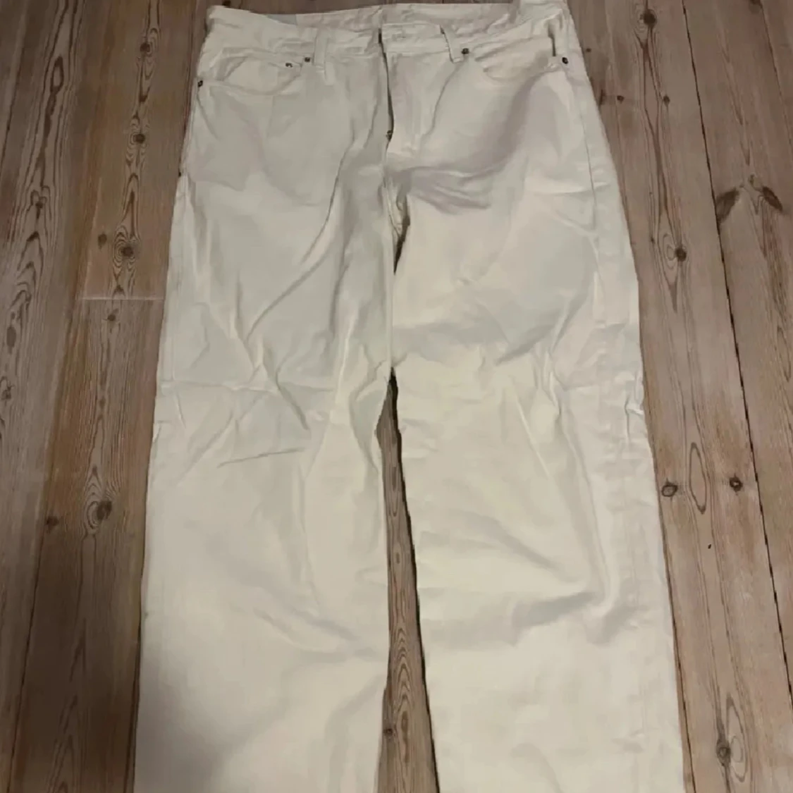 Feta vita jeans från H&M i loose fit-modell med raka ben och klassisk femficksdesign! Byxorna har midja med hällor för bälte och är tillverkade i mjukt bomullsmaterial.