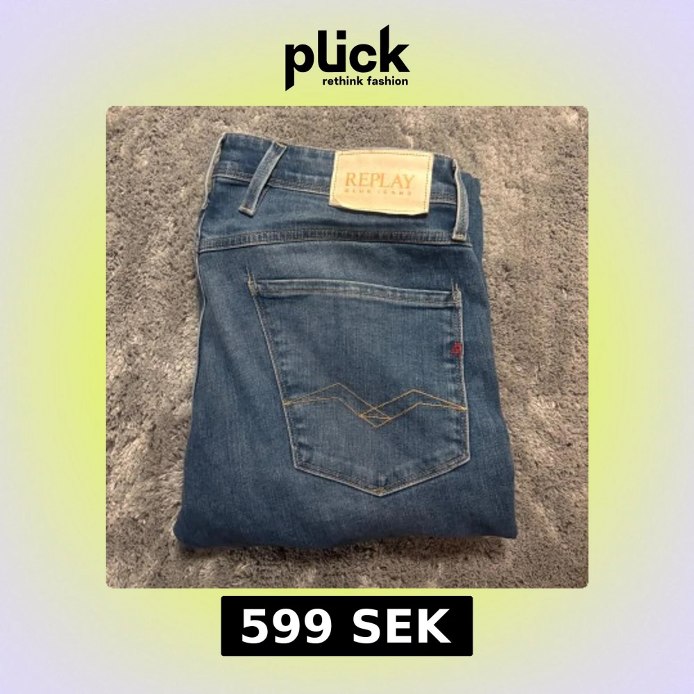 Snygga blå jeans från Replay i modellen Anbass Slim Fit. Klassisk femficksdesign med ljus tvätt och diskreta slitningar. Jeansen har guldfärgade sömmar, logotyp på bakfickan och detaljerad etikett i midjan. Perfekta för dig som gillar en smalare passform.
