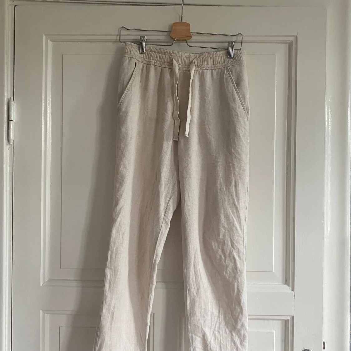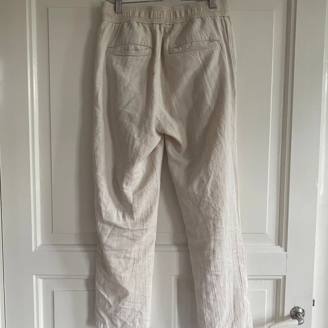 Hej, säljer nu dessa linnebyxor från Zara. De är Ljusbeigea, storleken S. De passar dig som är runt 160-170cm. Ansvända en del men väl omhändertagen. Byxorna har dock en liten fläck men man ser den knappt när man bär de. Frågor?, bara att höra av dig