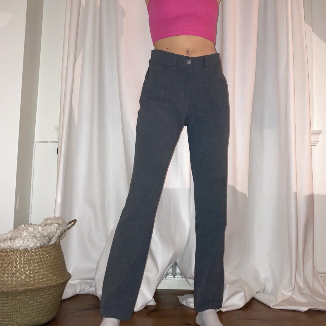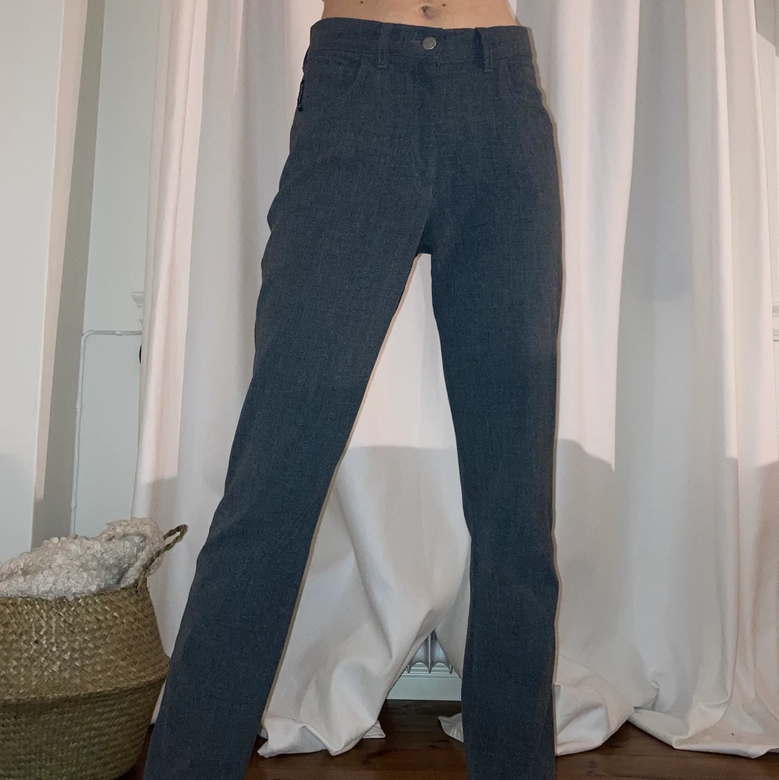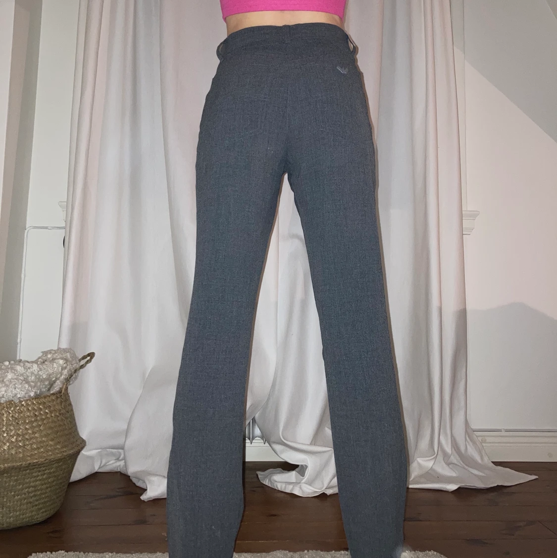 vintage kostymbyxor ifrån armani💗 inköpta secondhand! super bra skick! jag är 165cm lång! ingen speciell storlek men jag är vanligtvis en 34/24/XS!