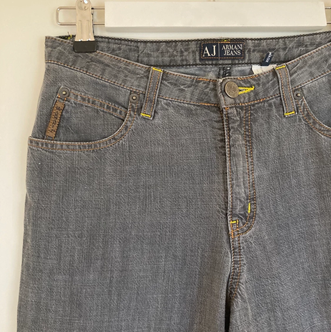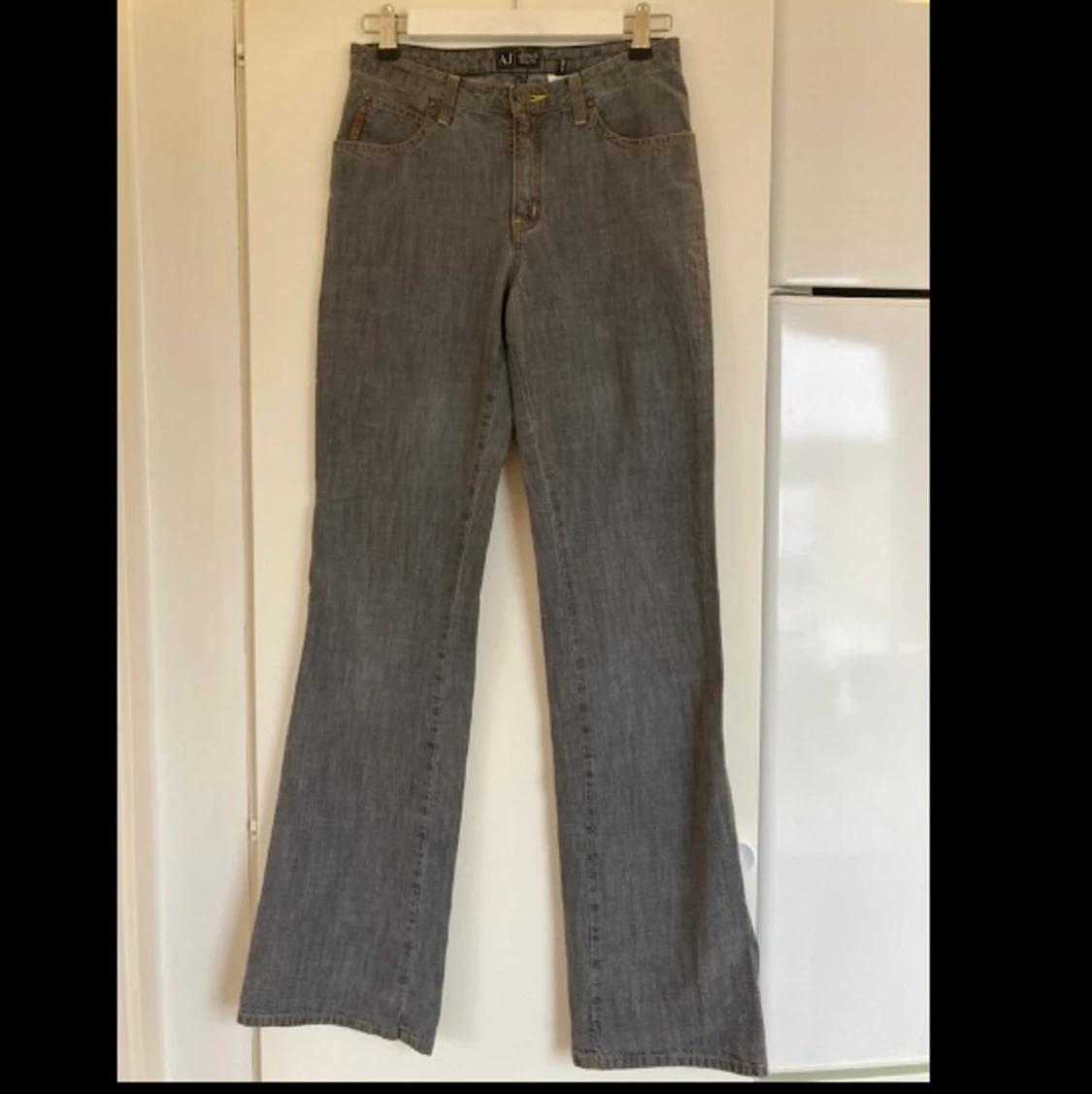 Grå vintagejeans från Armani i strl 29! Är i en bootcutmodell, använda men i bra skick!