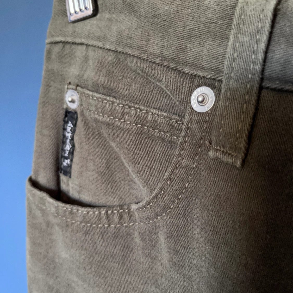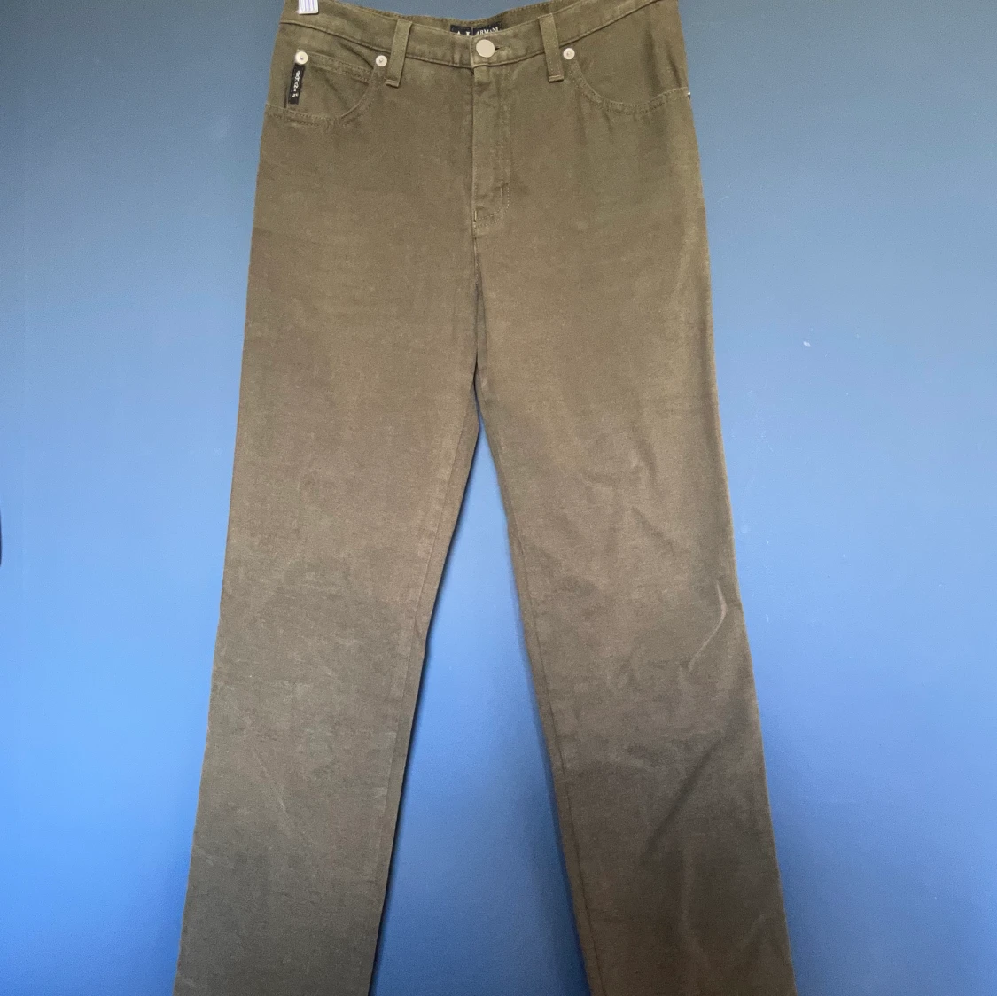 Low to mid rise, raka ben. Grå / Mörkgröna jeans i en mjukare material, lite stretch. Köpte begagnat och fint skick!
